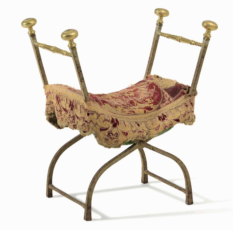 Faldistorio in ferro e bronzo dorato, XIX secolo