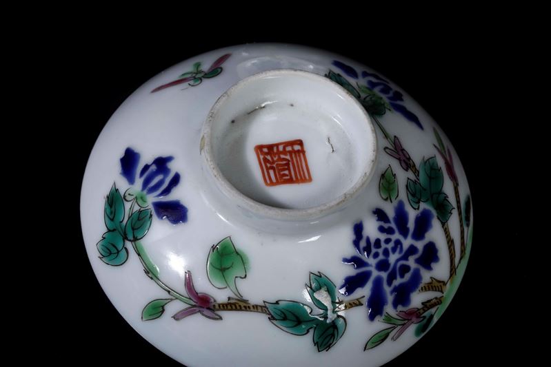 Porcellana, smalti policromi tutti sopracoperta blu, verde nero marrone e rosso; marca a sigillo decorativa di fantasia