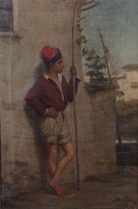 olio su tela, cm 50x35, firmato e datato 1868 in basso a destra