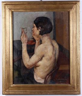 Artista del XX secolo Donna di spalle davanti allo specchio