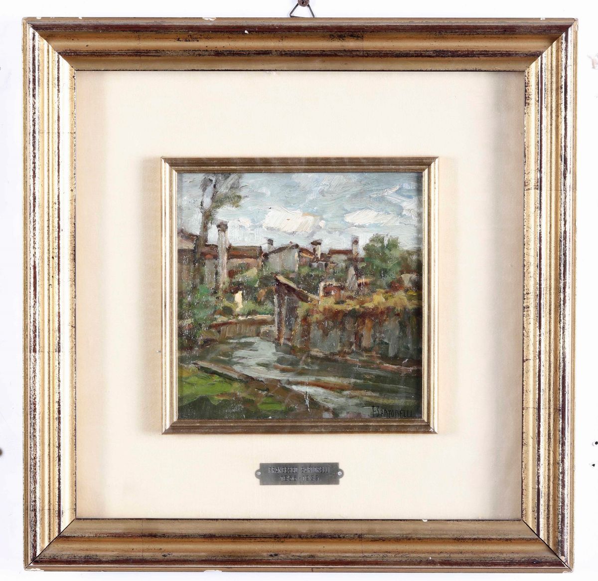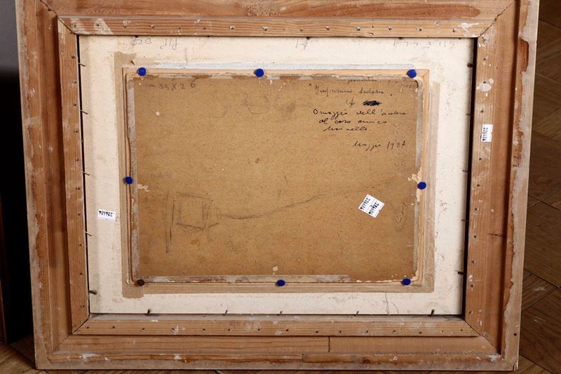 Francesco Sartorelli paesaggio 17x17 olio su cartone e Teo Gianniotti Impressione isolana 34x26 olio su cartone