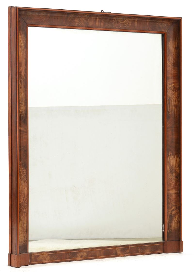 Comò Carlo X lastronato in radica con specchiera, XIX secolo