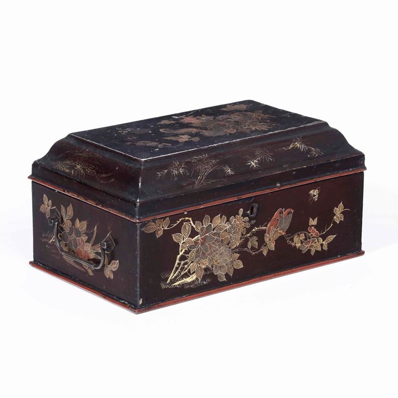 Scatola in legno laccato con decori naturalistici, Cina, Dinastia Qing, XIX secolo