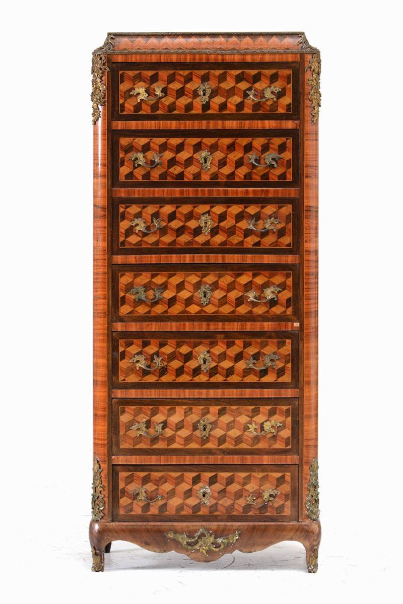 Settimanale a marqueterie in legni di frutto. Francia, epoca Napoleone III