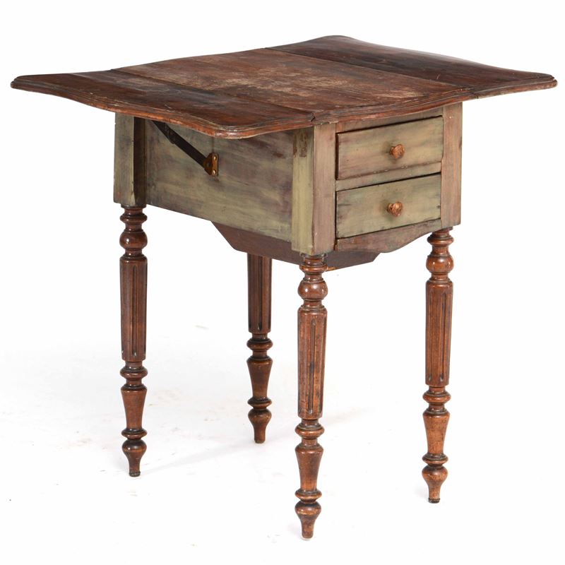 Tavolinetto da lavoro a bandelle in mogano. Inghilterra fine XIX secolo