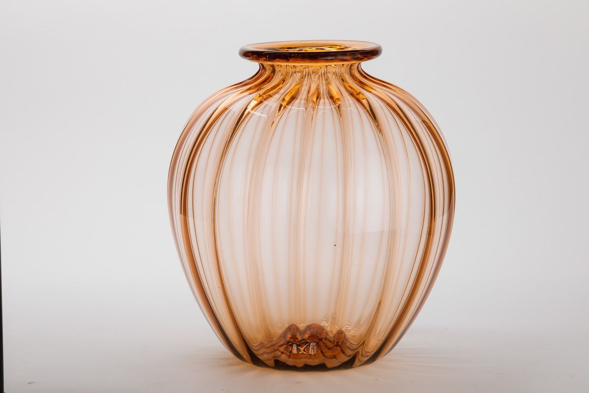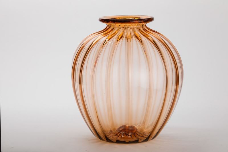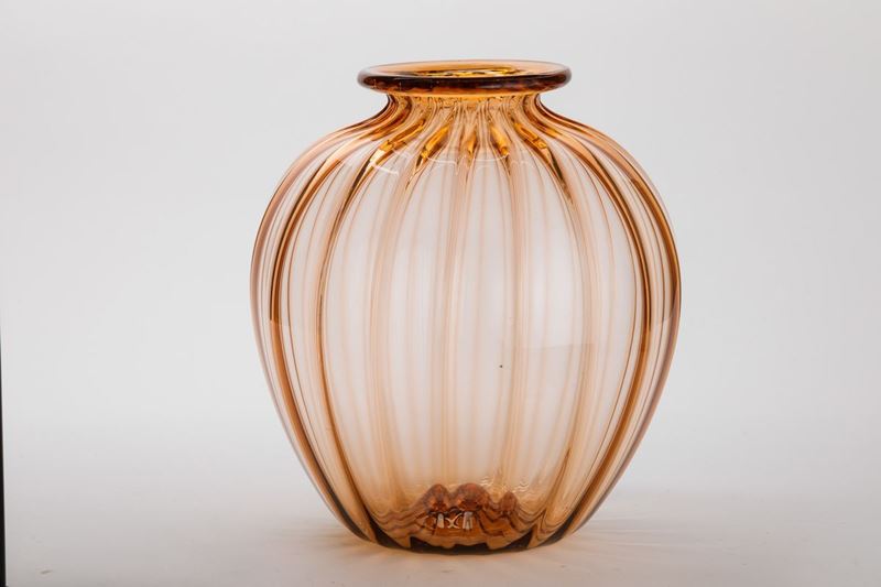 Grande vaso soffiato rosa a costolature.