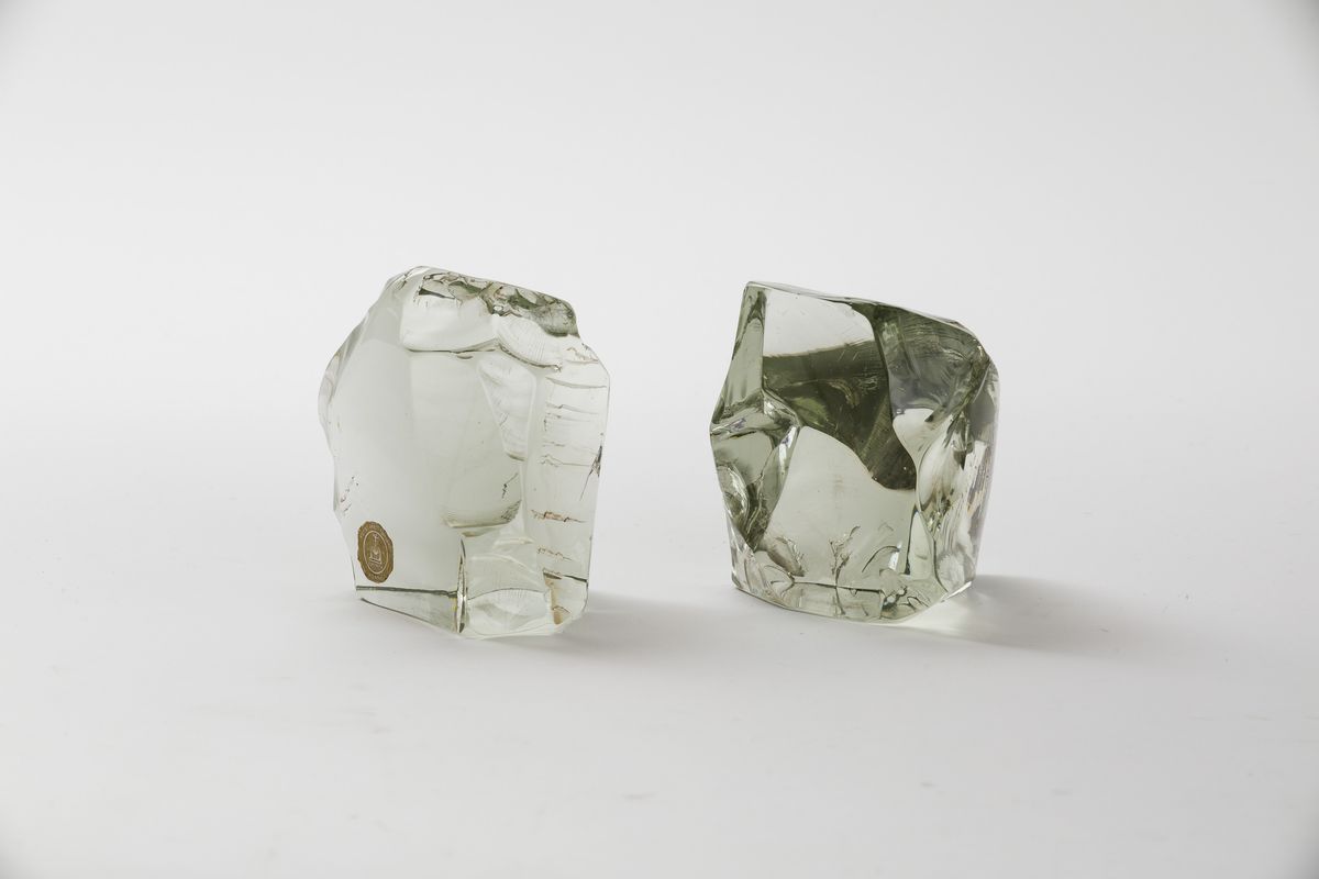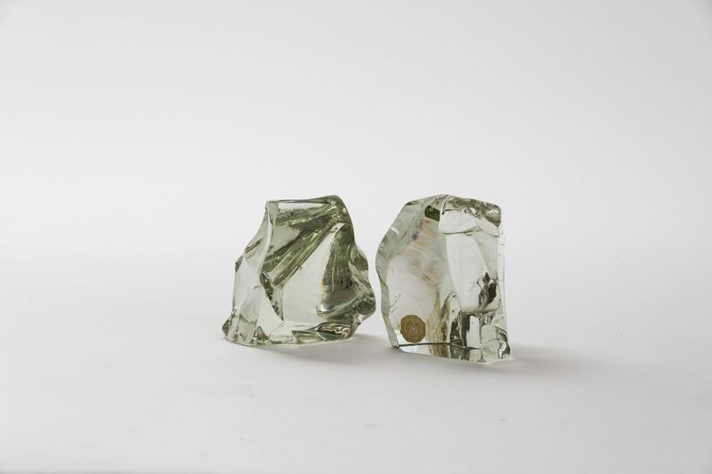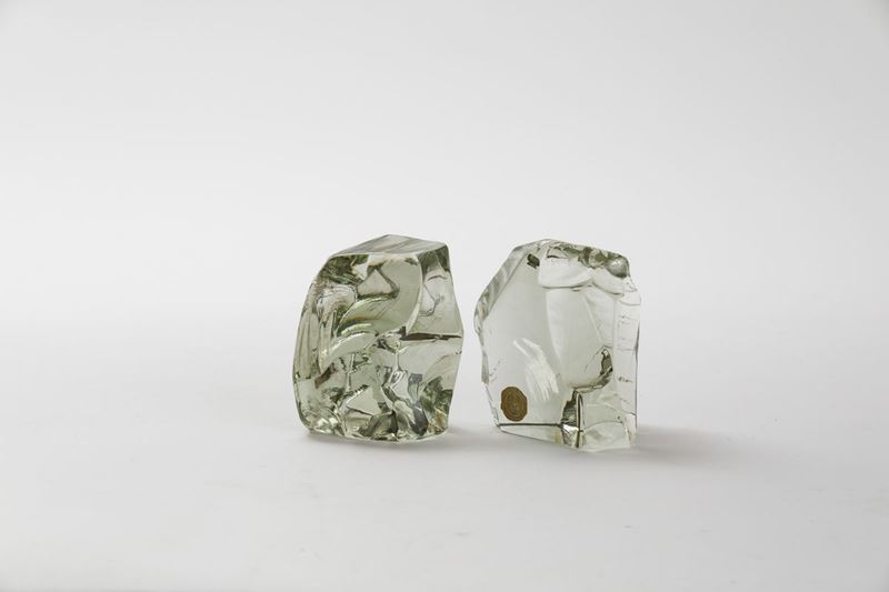 Coppia di fermalibri in cristallo scalpellato.