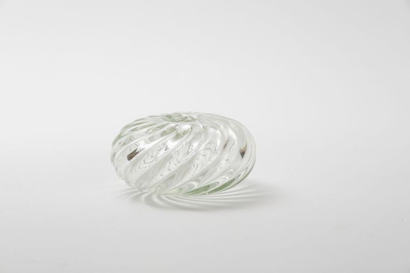Piccolo vaso in vetro soffiato a costolature ritorte.