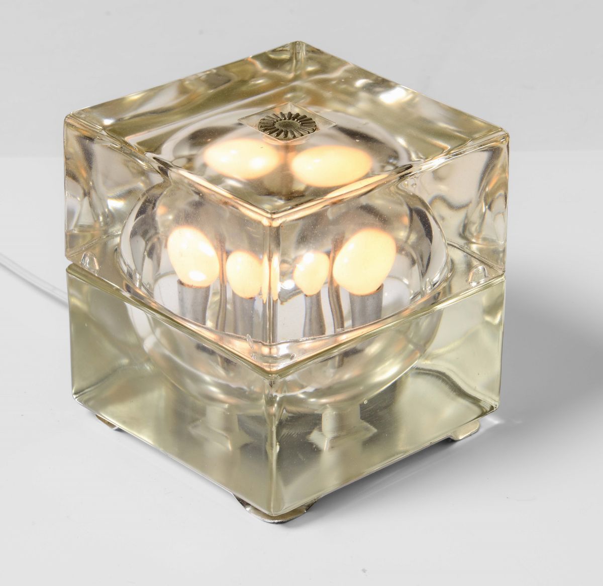 Lampada da tavolo mod. Cubosfera in vetro stampato.