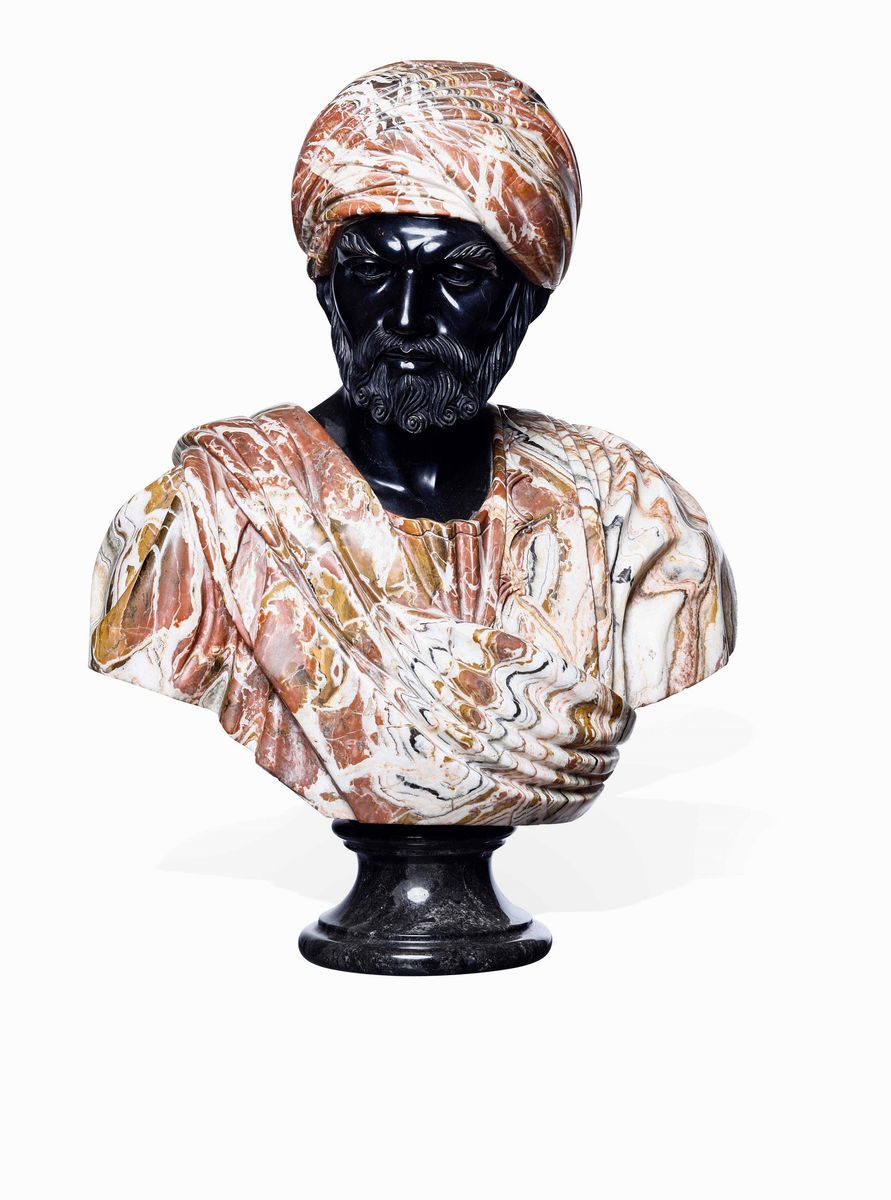 Coppia di mori marmo nero del Belgio e marmo colorati Scultore italiano del XX secolo
