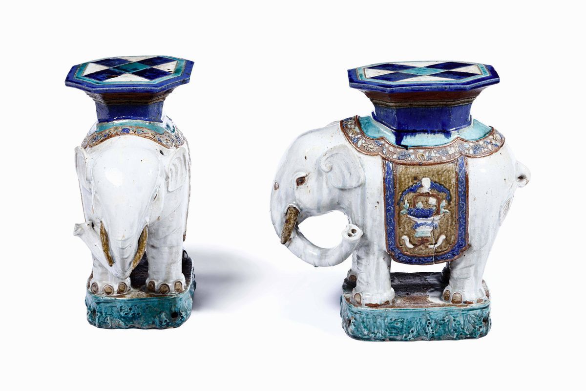 Coppia di panchetti in gres a foggia di elefanti, provenienza de Beistegui, Paris