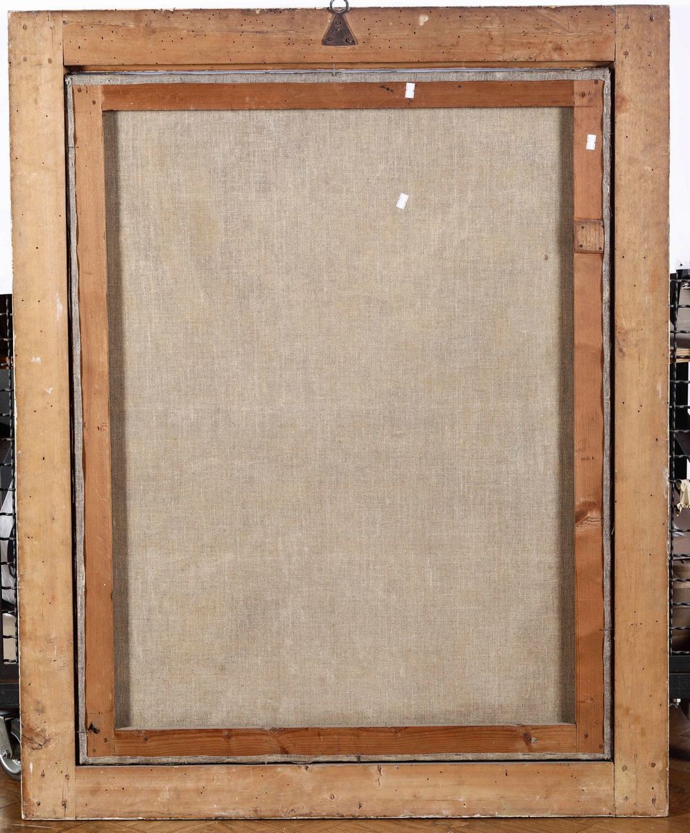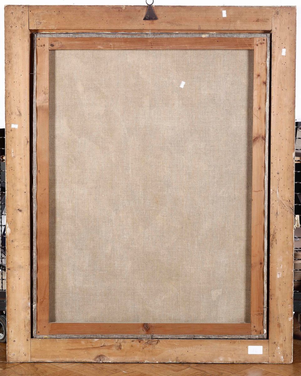 coppia di dipinti a olio su tela, cm 101x78, in cornici dorate