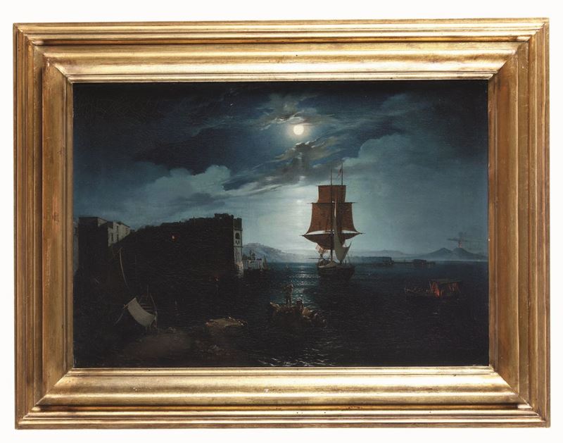 Angelo Viviani (Napoli 1800 - ?) Notturni raffiguranti la Costa di Vico Equense dal mare e la Baia di Napoli da Palazzo [..]