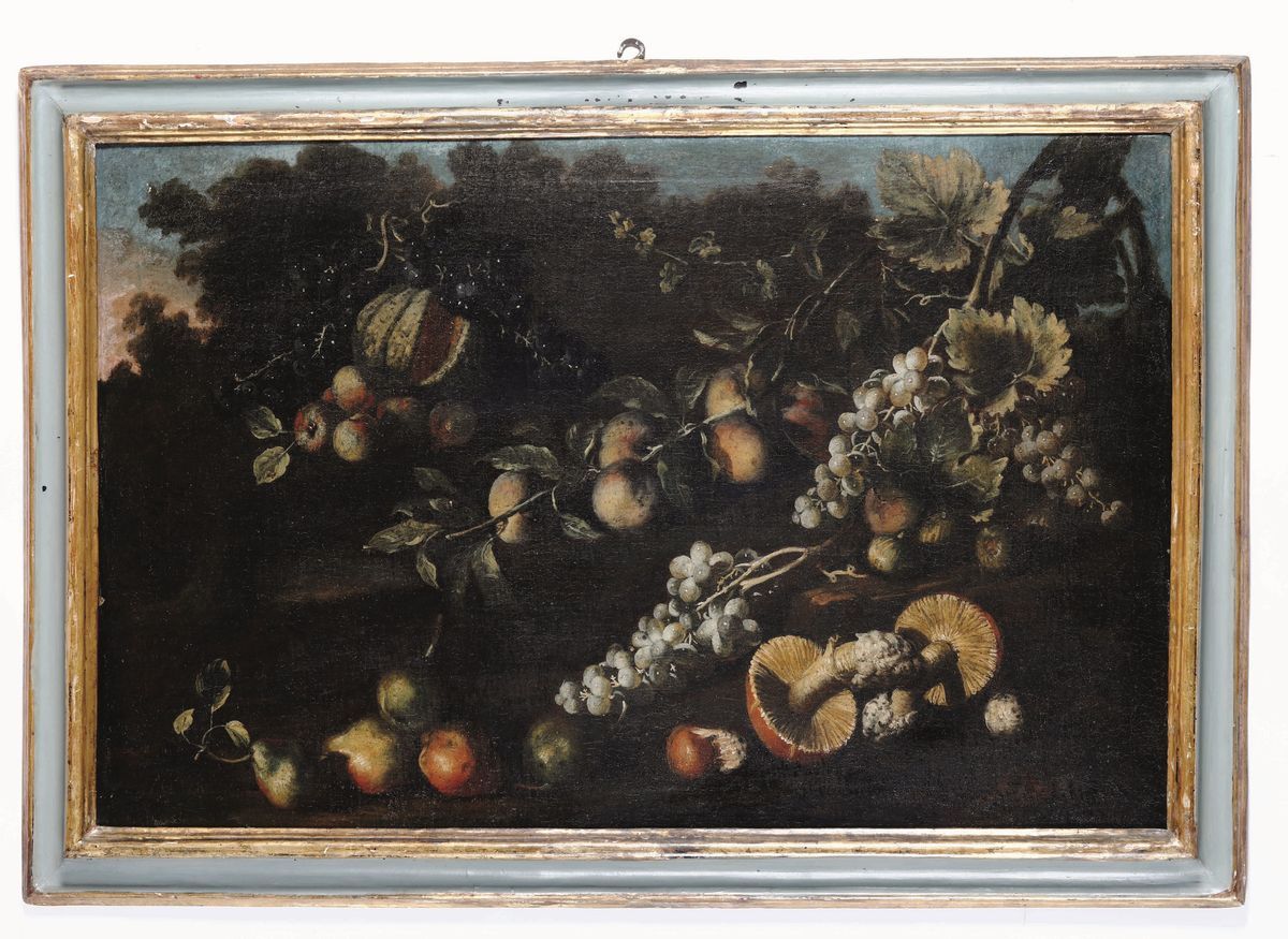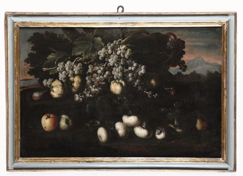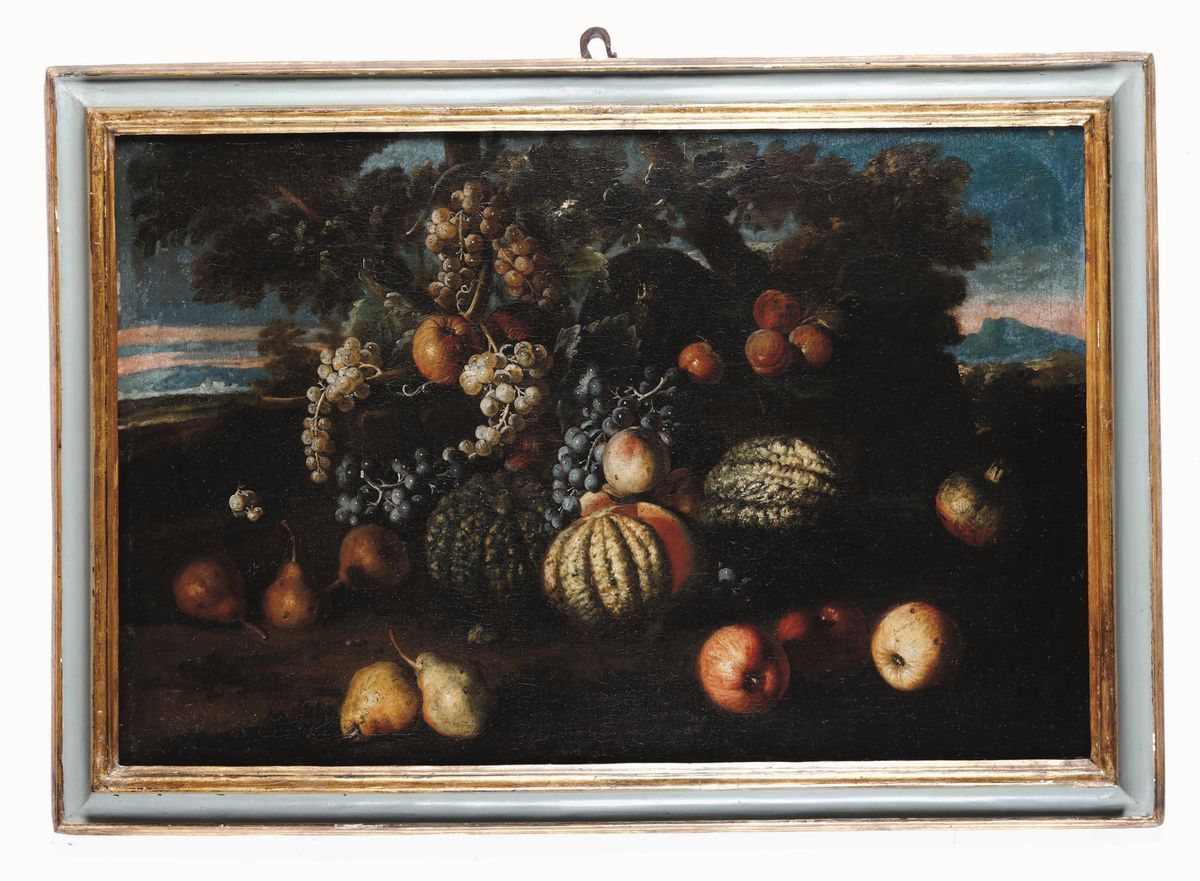 Scuola romana del XVII secolo Nature morte con frutti e ortaggi