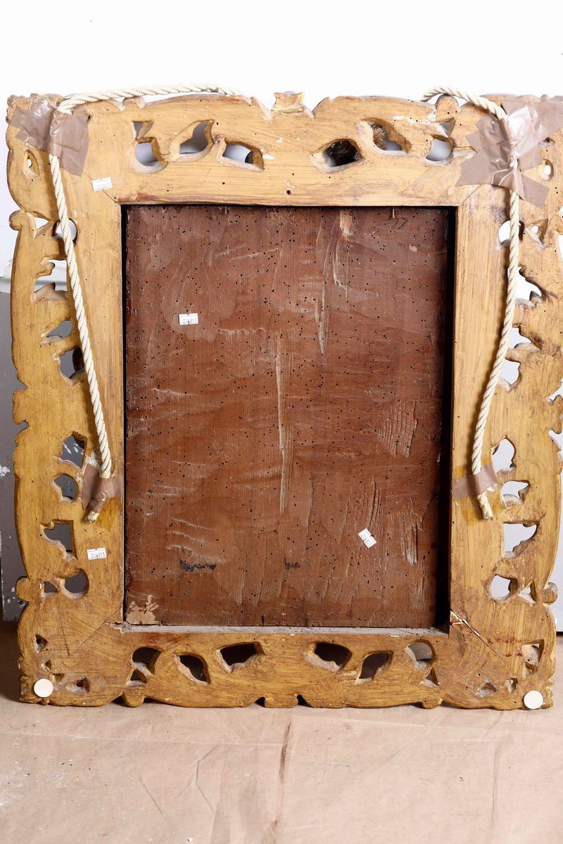 olio su tavola, cm 50x36,5 in cornice dorata e intagliata