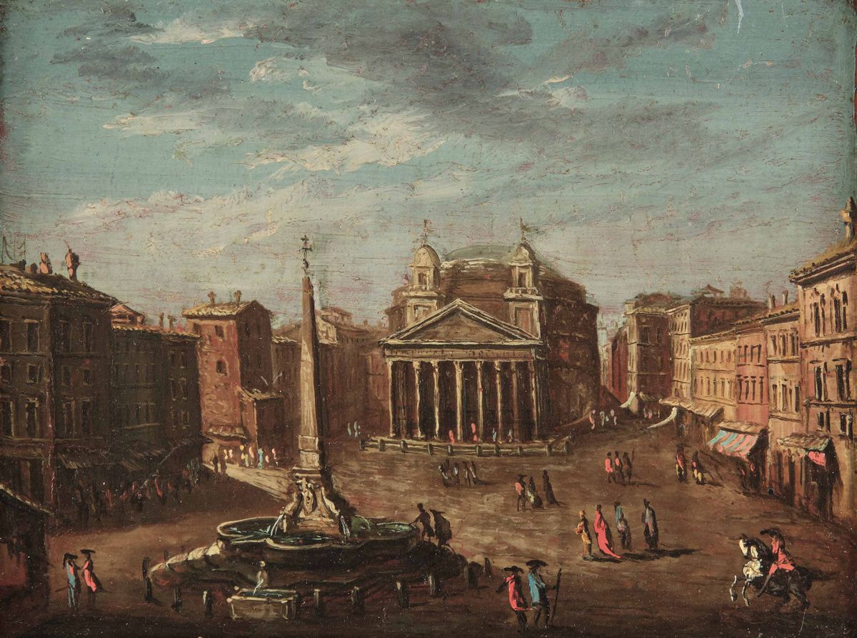 Thomas Masselli (attivo in Italia nel XVIII secolo) Veduta di San Pietro e del Pantheon