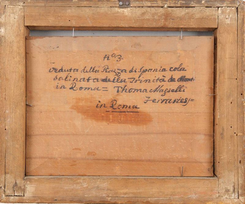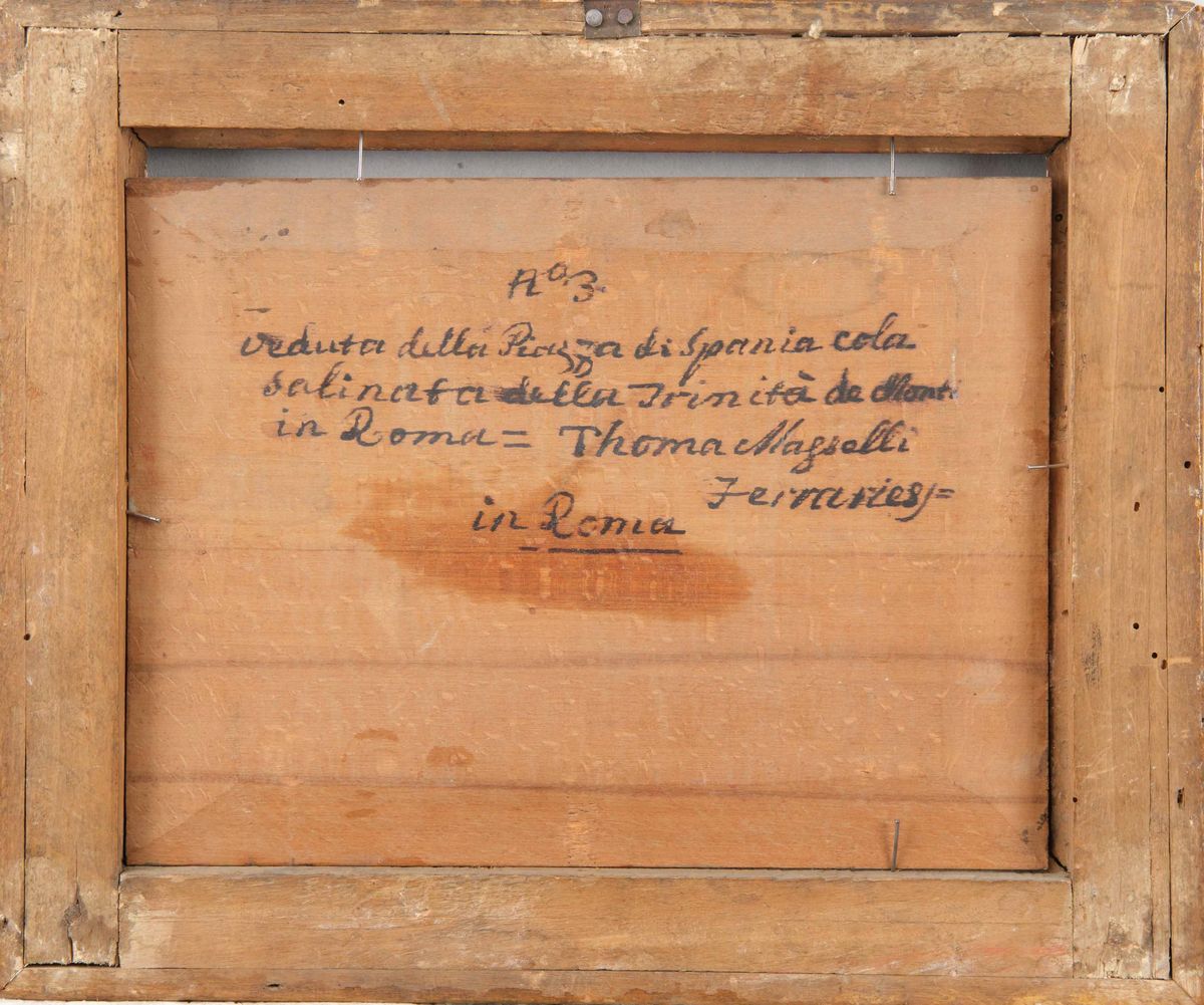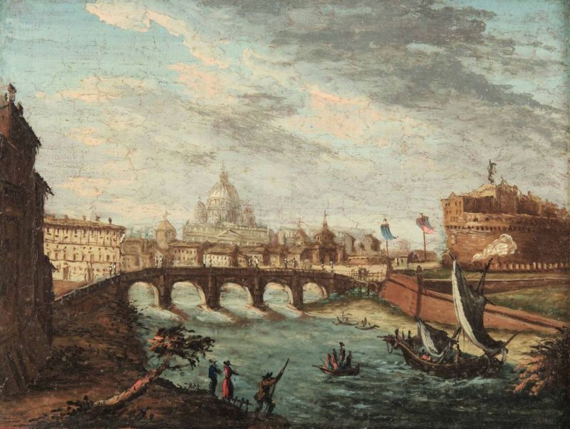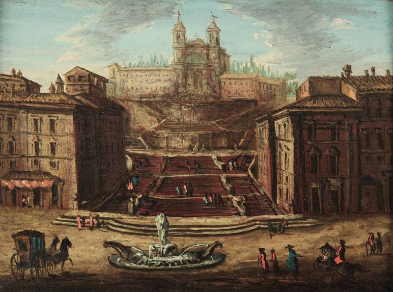 Thomas Masselli (attivo in Italia nel XVIII secolo) Veduta di Piazza di Spagna e di Castel Sant'Angelo