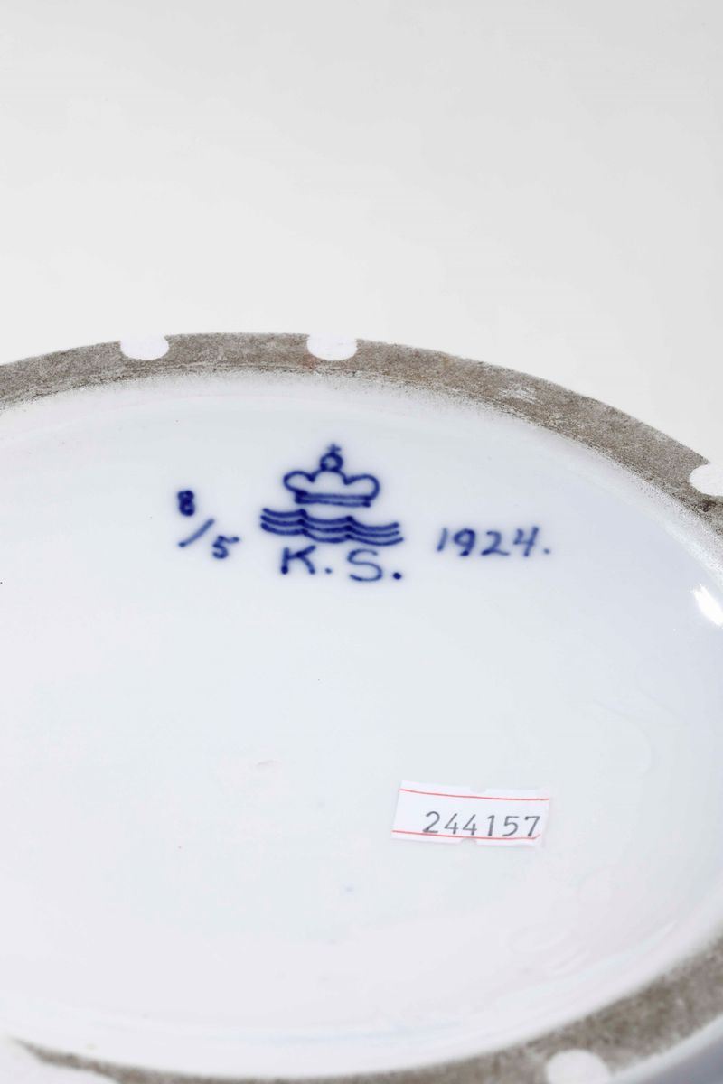 Porcellana. Marca: onde con corona e “K.S.” “1924” “8/5”, in blu. Altezza cm 37. Conservazione: ottima