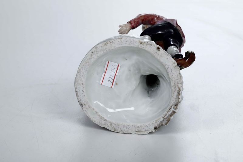 Porcellana policroma. Marca: assente. Altezza cm 19,6 Conservazione: braccio sinistro del giovane e una gamba dei pantaloni restaurati