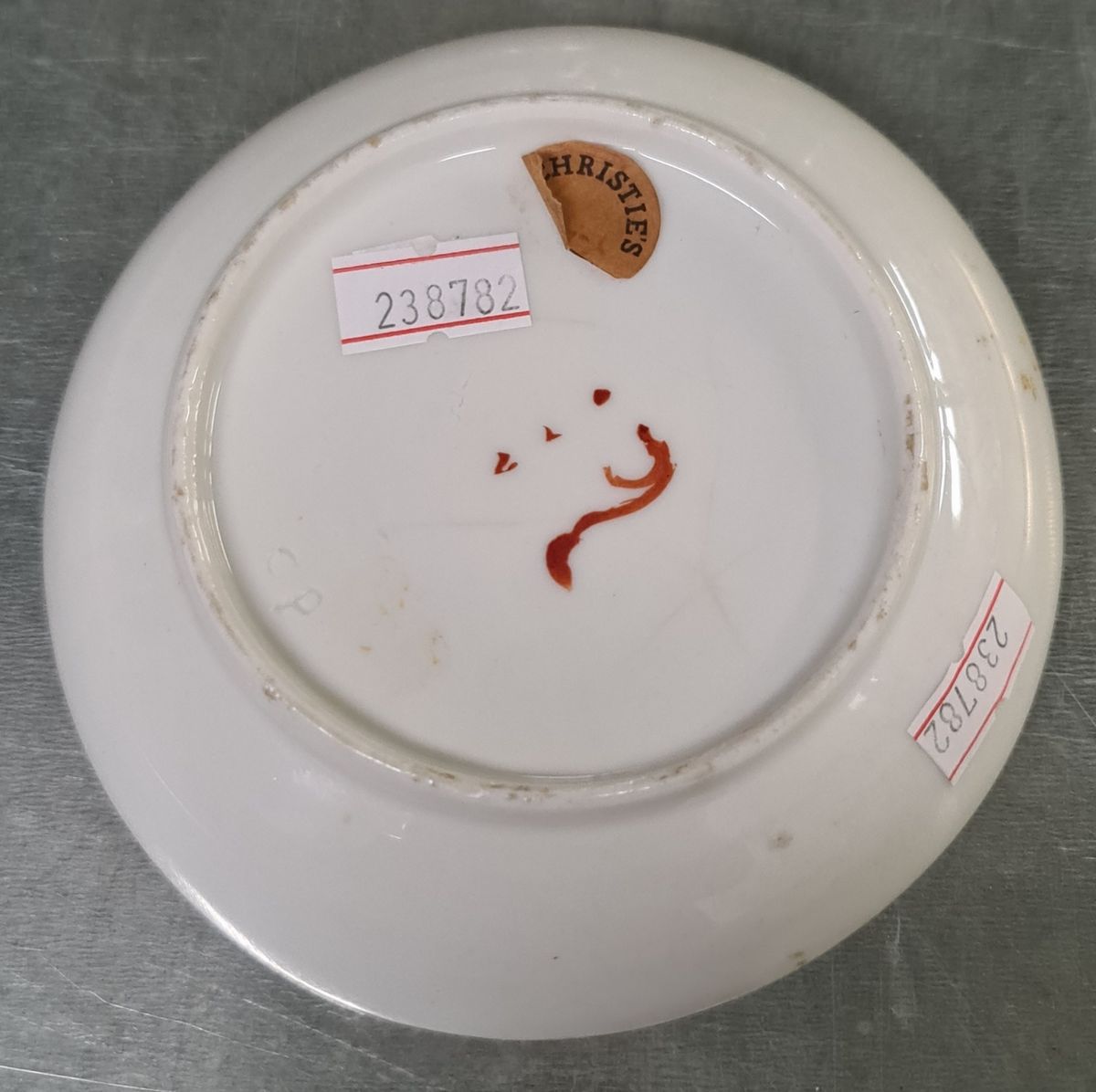 Porcellana. Marca: simbolo in rosso ferro e “CP” inciso, etichetta cartacea “Christie’s” posta sul verso. Dimensioni: diametro cm 12. Conservazione: felatura a stella passante