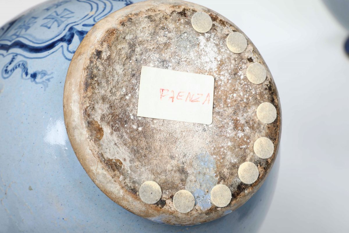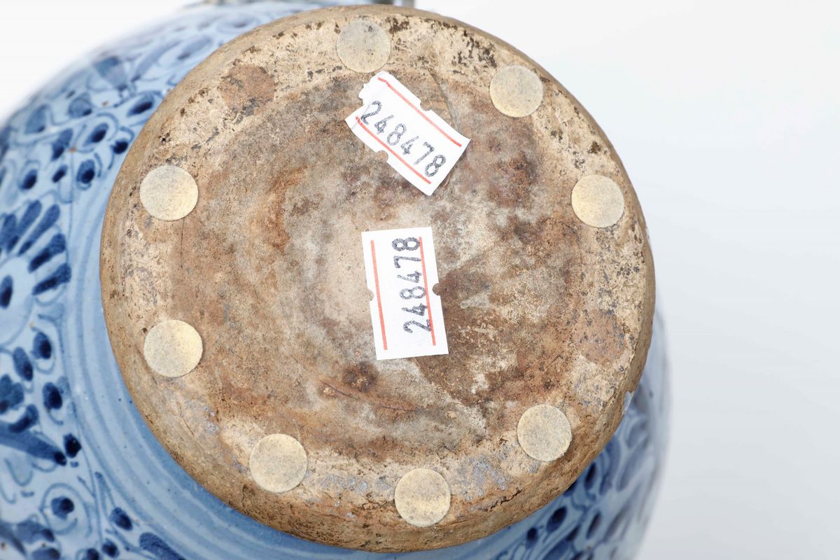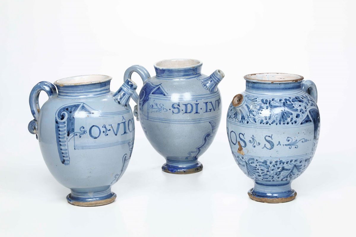 Maiolica. Altezza cm 23 circa. Conservazione: ottima; qualche insignificante sbeccatura; l’orciolo “M Ros S” con beccuccio accorciato, qualche salto di smalto e sbeccature ai bordi