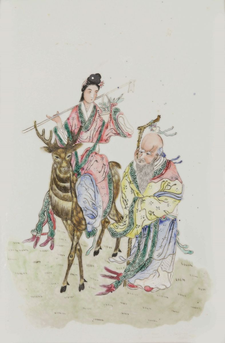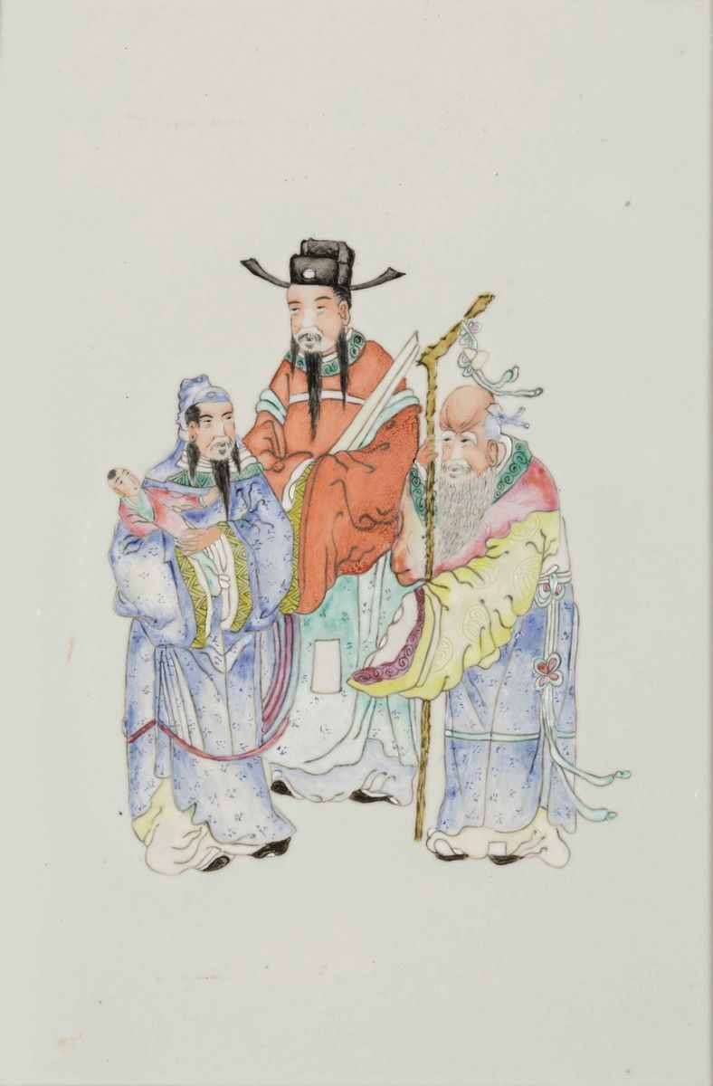 Due placche in porcellana raffiguranti scene di vita comune con saggi, fanciulla e dignitari, Cina, Dinastia Qing, XIX se [..]
