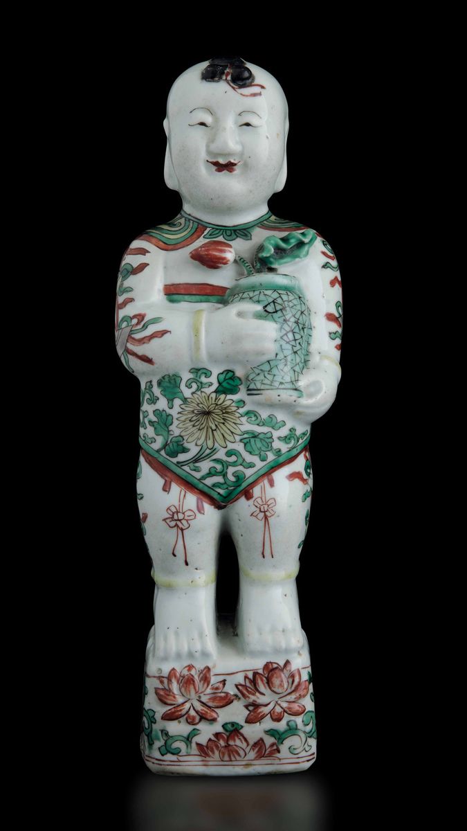 Figura di O'Boy in porcellana Famiglia Verde, Cina, Dinastia Qing, epoca Kangxi (1662-1722)