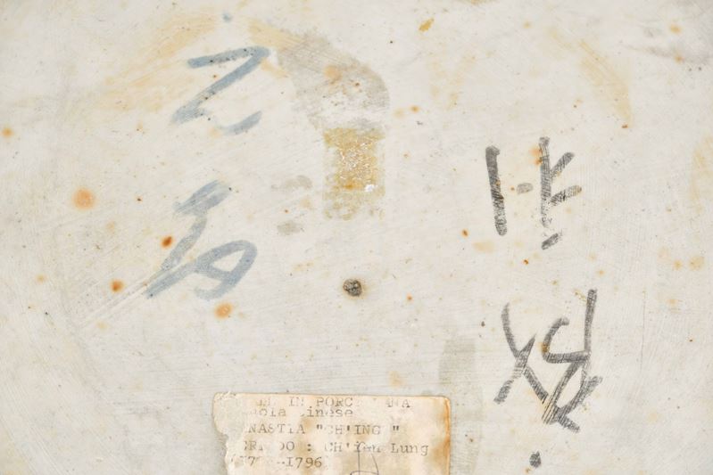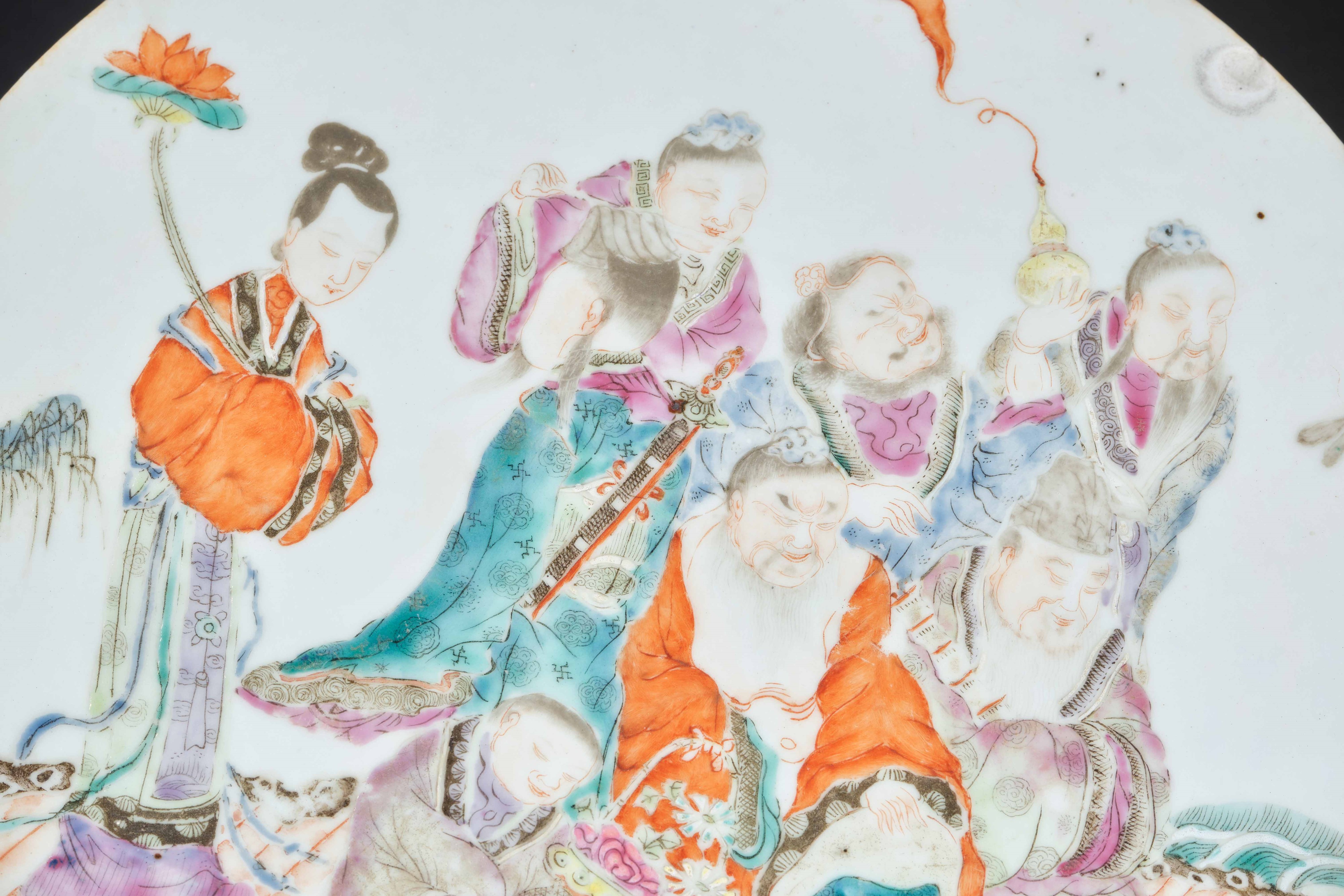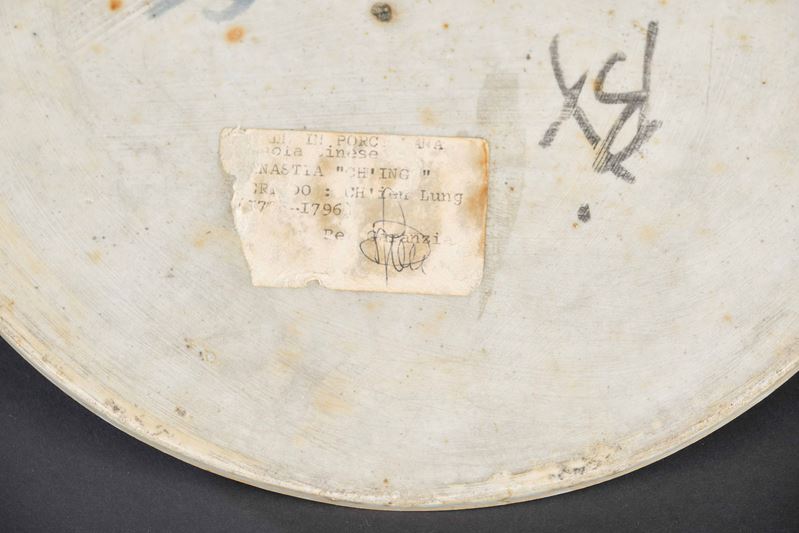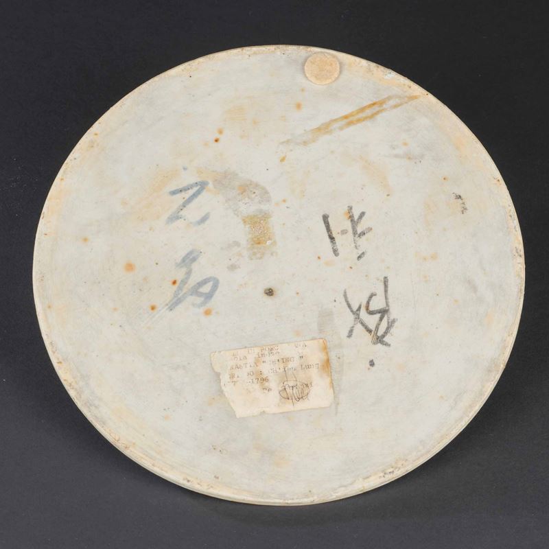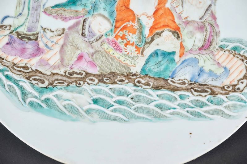 Placca circolare in porcellana con figure di saggi su imbarcazione, Cina, Dinastia Qing, XVIII-XIX secolo