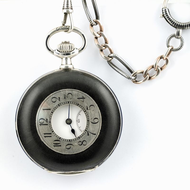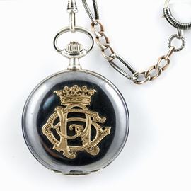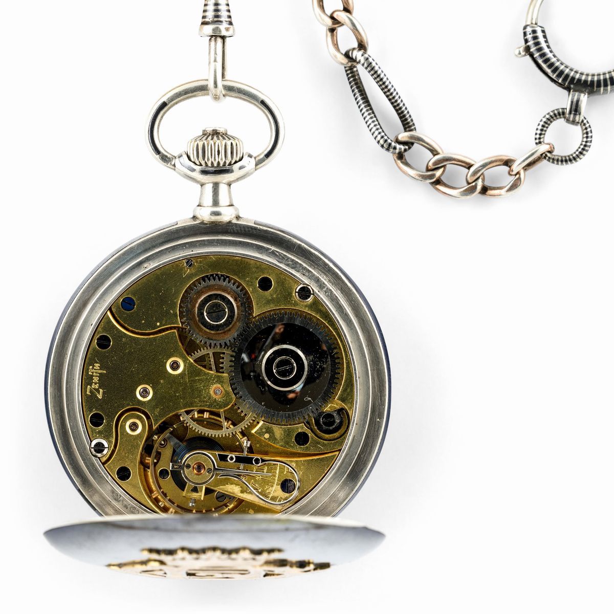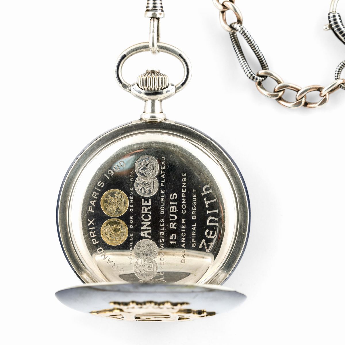 ZENITH - Orologio da tasca Occhio di bue d'argento con emblema marchionale in oro e firma de Sade con catena