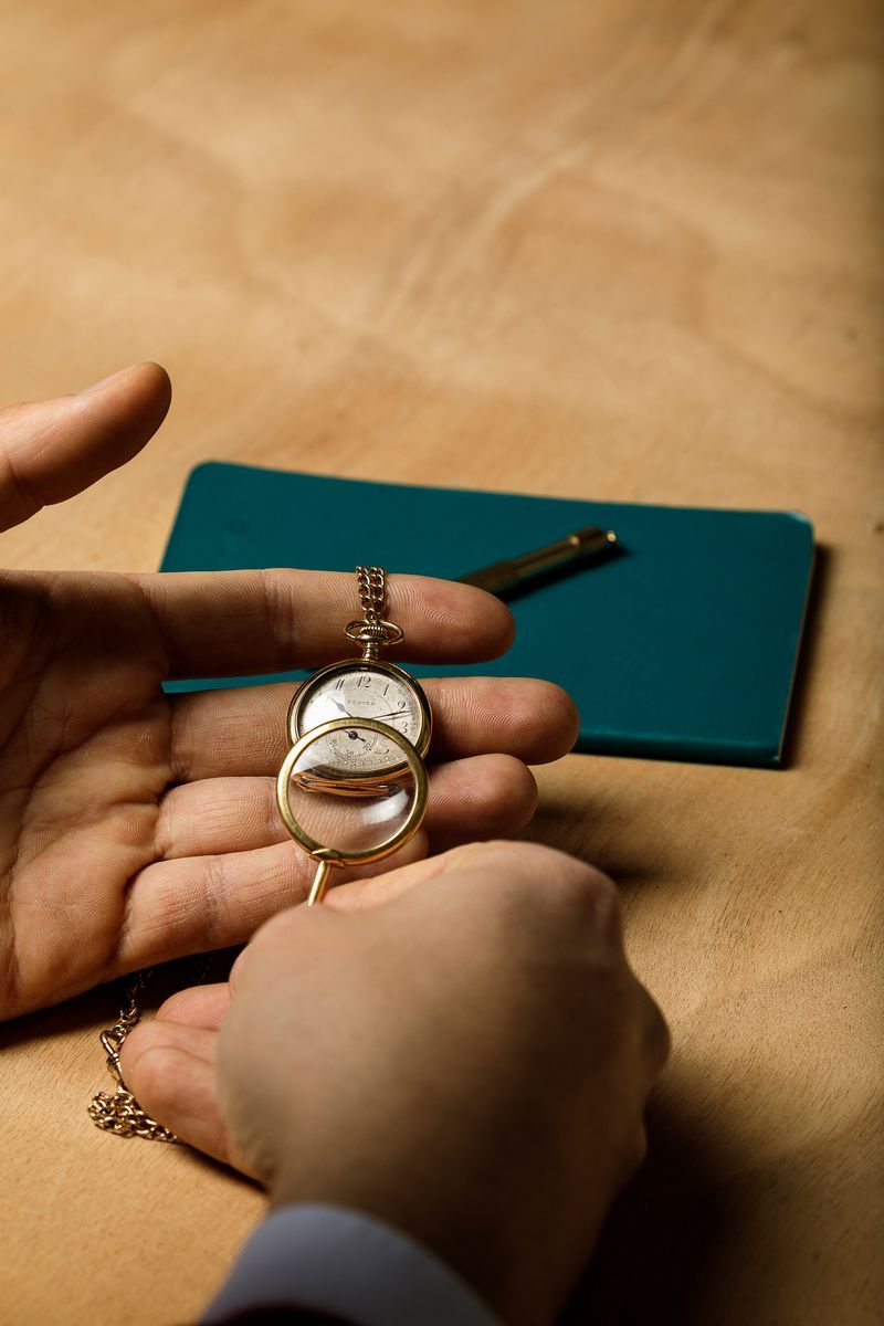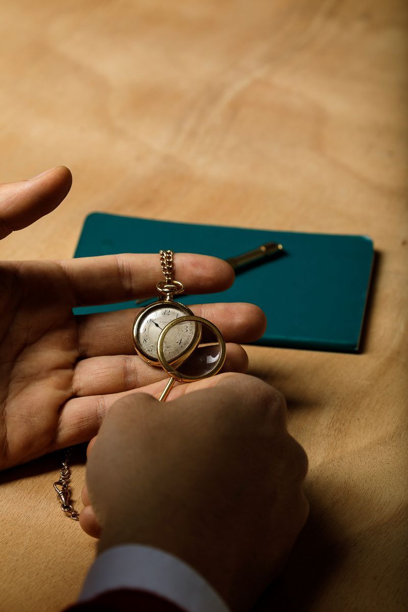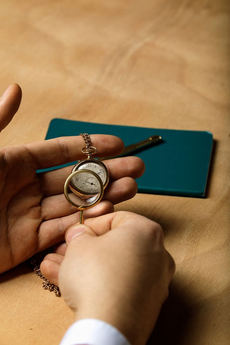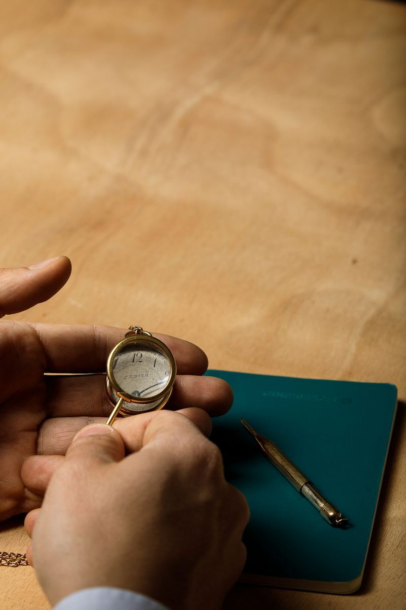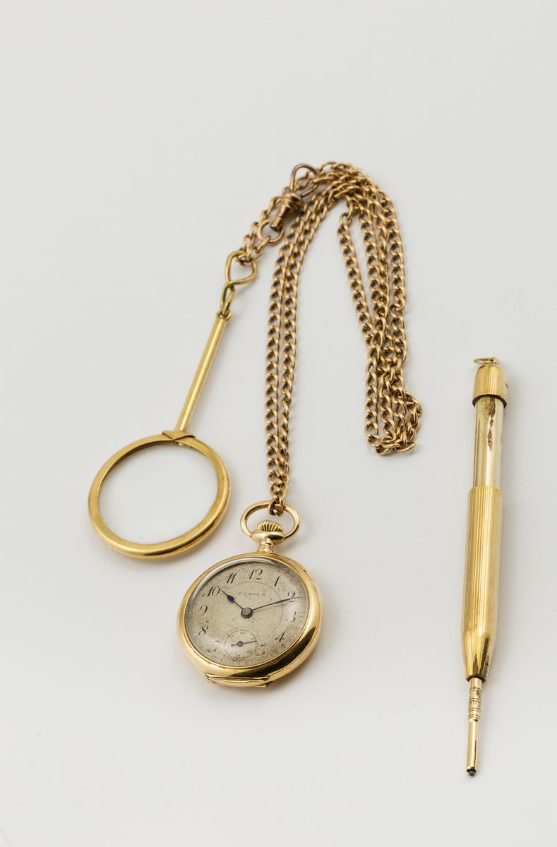 ZENITH - Orologio da taschino in oro 18k con catena con lente e portamina in oro, circa 1900