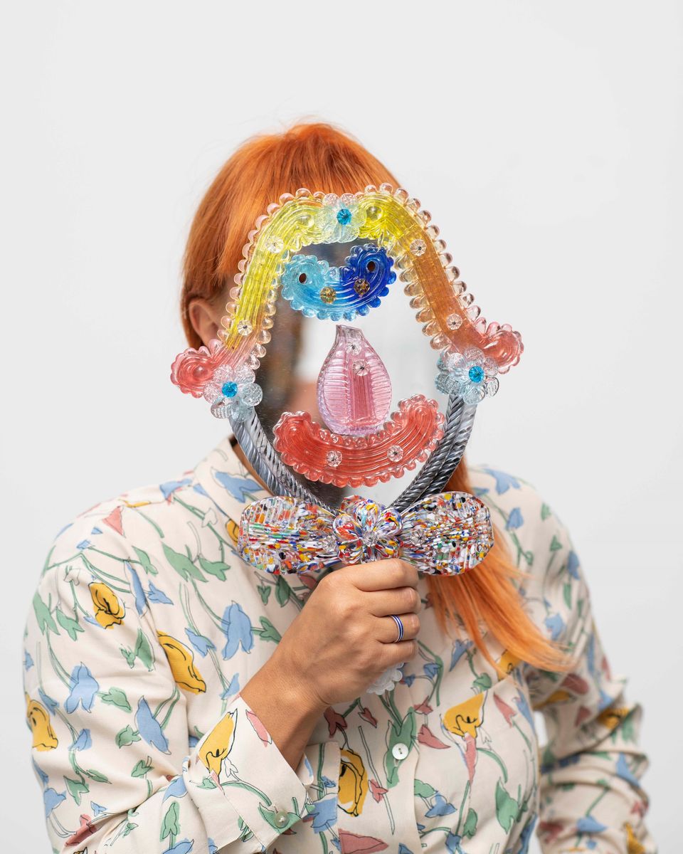 Teste composte are a series of mirrors inspired by Arcimboldo’s paintings, com- posed of swirls, rosettes, flowers and leaves – some of the most typical elements of craftwork of Venetian mirrors – in the place of beards, eyes, noses and hair. The mirrors, so over-decorated, recall the excesses of the baroque era, downplay- ing instead any seriousness typical of the Baroque trend with irony and lightness. They are made in collaboration with one of the last mirror company based in Murano: Barbini Specchi Veneziani.
