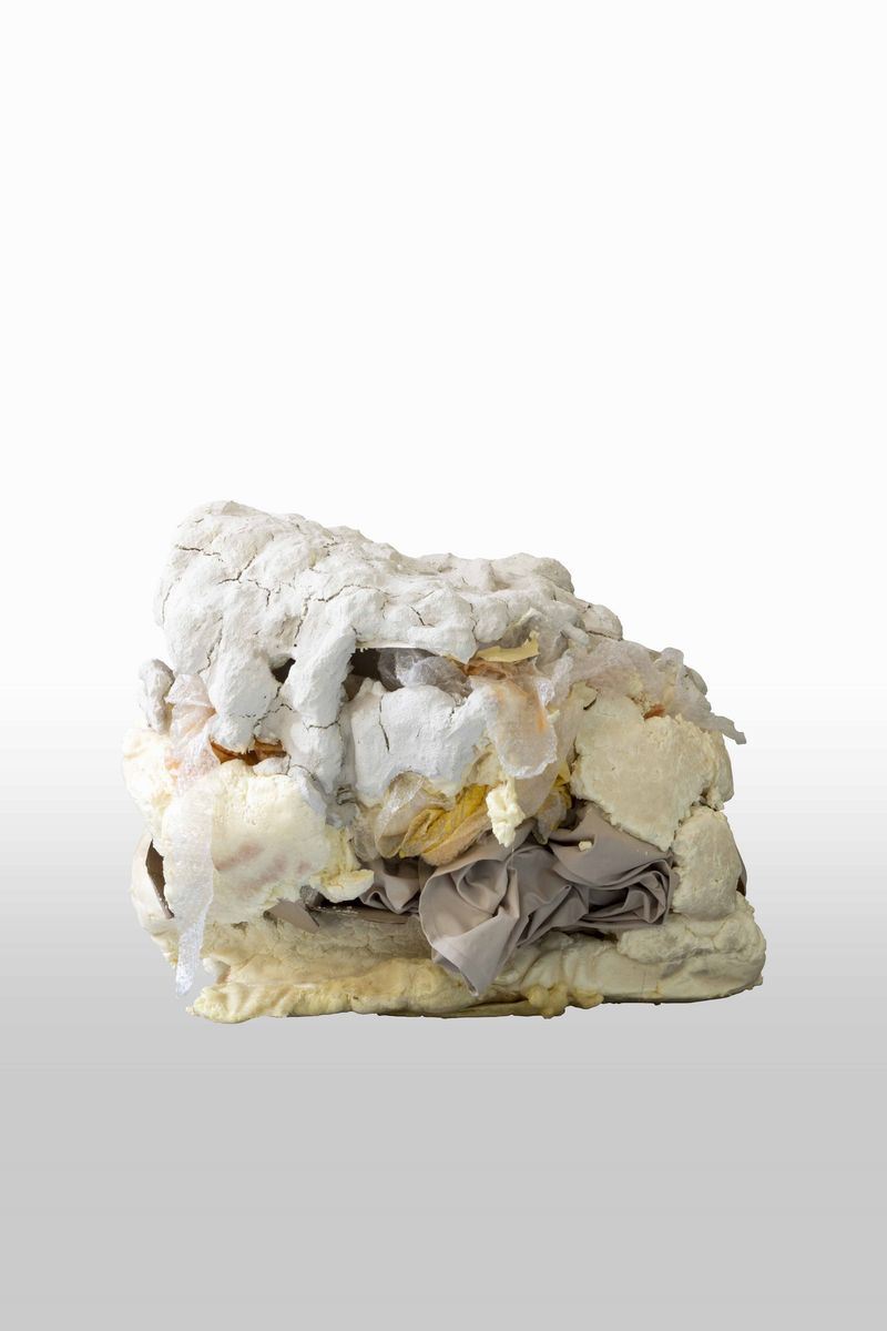 "Souvenir from Southern Crater, Mars” emphasises the impact of digital technologies on the process of creating them as well as their sub- sequent perception and anchoring in memory. This process uses fictional associations and fantasy, using a physical-virtual disconnect in pro- cesses and forms. Under the layer of materiality, questions arise about the transience of nature on the journey that unites the concepts of fiction vs. reality, virtuality vs. physicality, true vs. false, intuition vs. facts, designer vs. artist, individual vs. community. With an aesthetic of science fiction and horror vacui, the work seem to emerge from a neighboring planet. The artwork circumscribes the viewer in a laboratory simulation, in a specu- lative environment, to the ideas and/