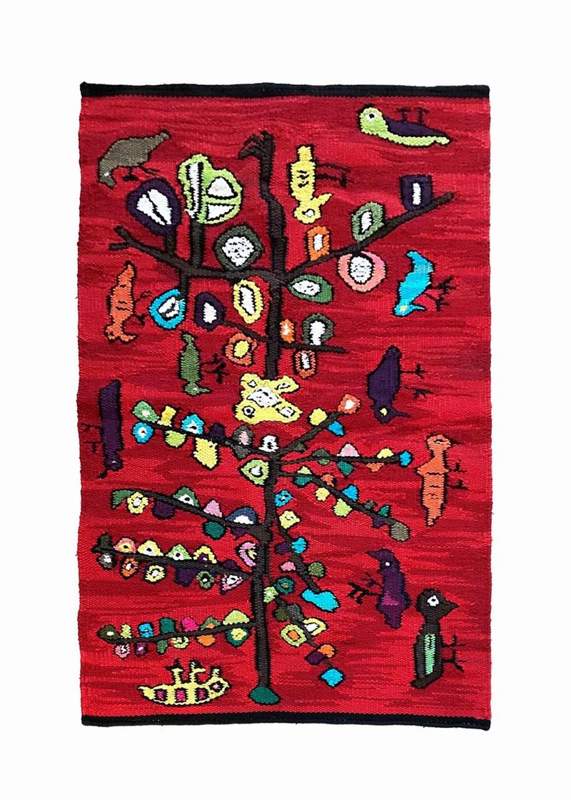 A unique reversible rug, designed and manufactured by South African designer Nawaaz Saldulker, in 2020, cotton material with flora and fauna motifs, dimensions c. 177 cm x 114 cm. With each second that passes by, a truck worth of textiles is piled into a landfill, this rug is handwoven with discarded t-shirts, which is used as its raw material.