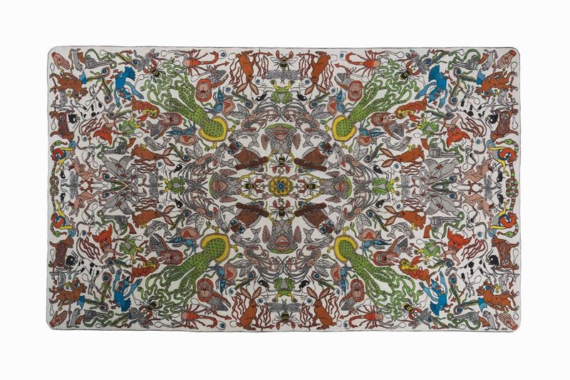 Onyric symmetries from animal and mate- rial world create a pattern that reminds of the visions of Hieronymus Bosch.
