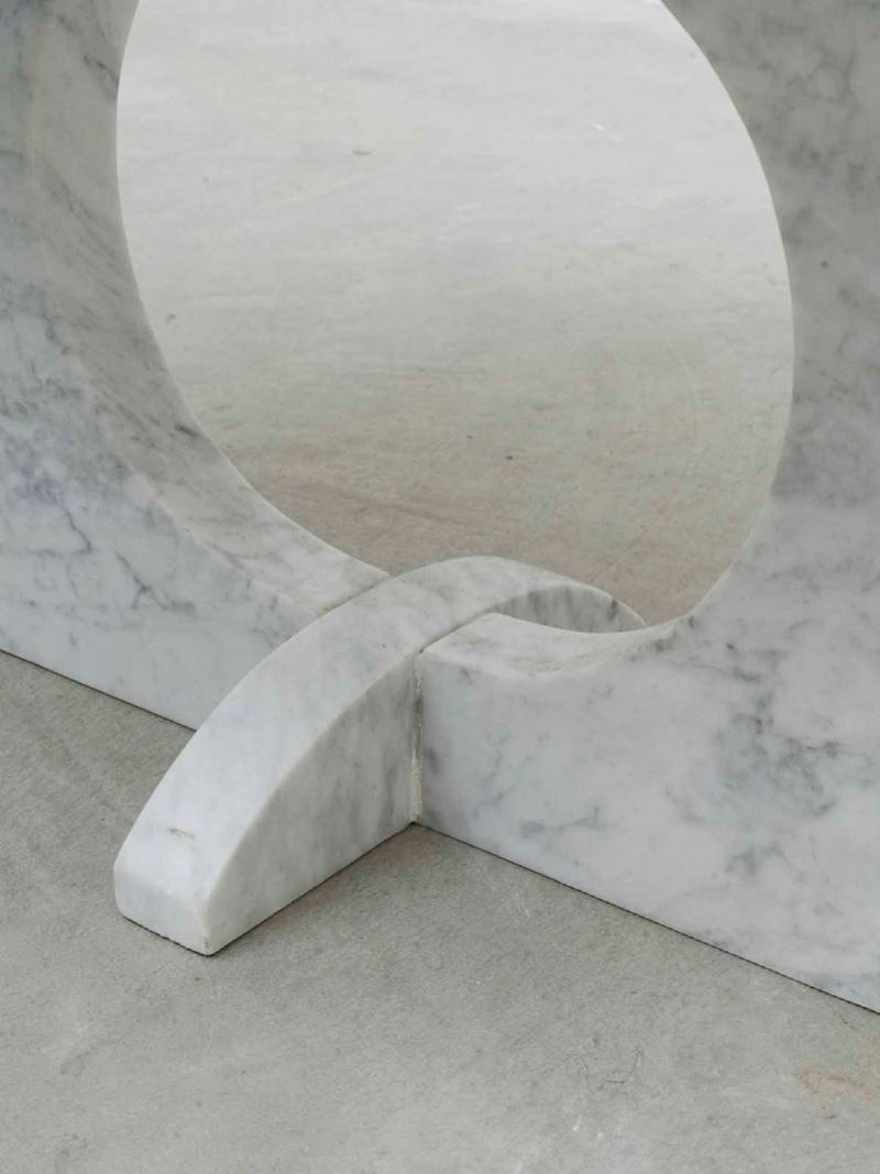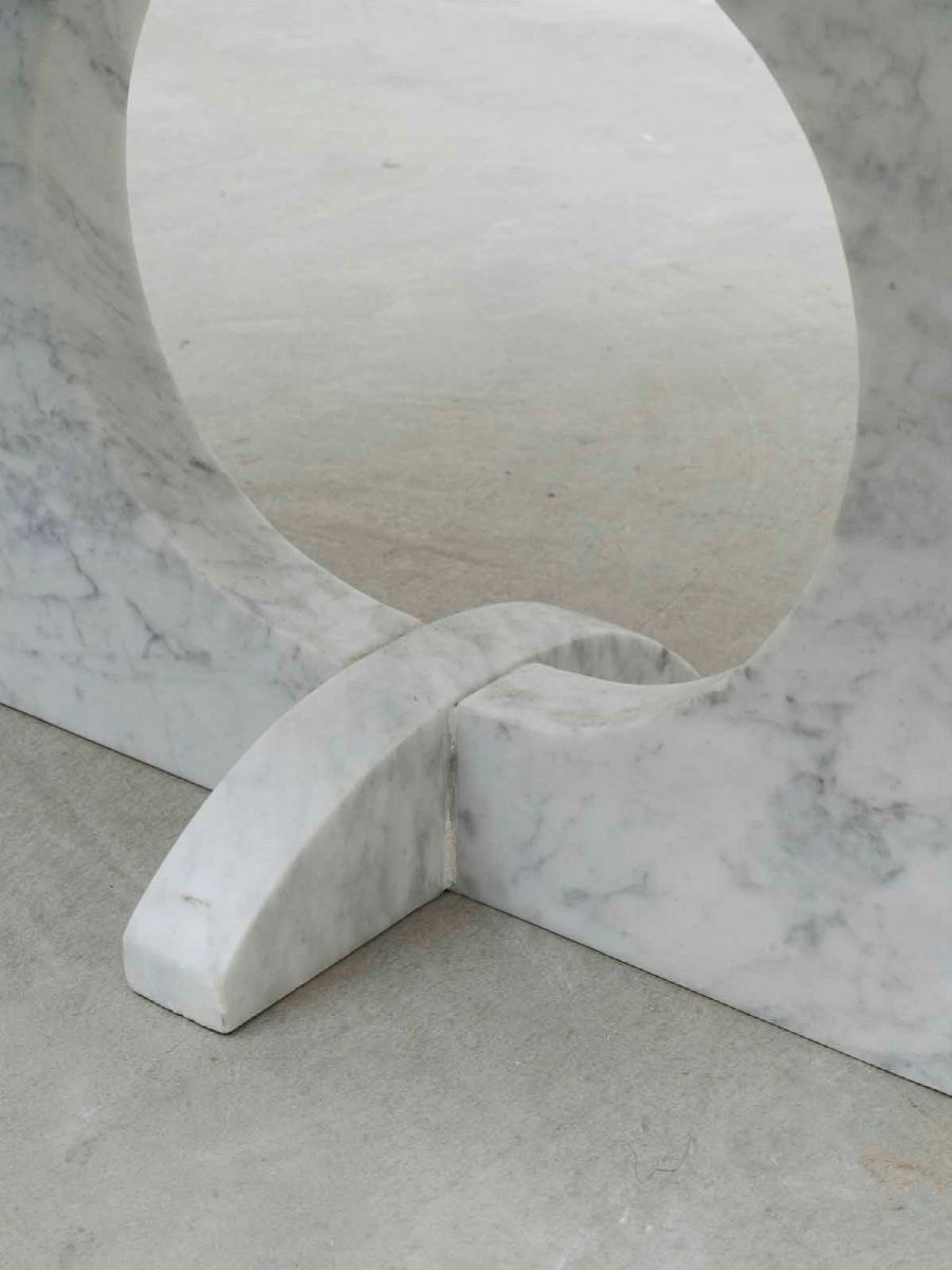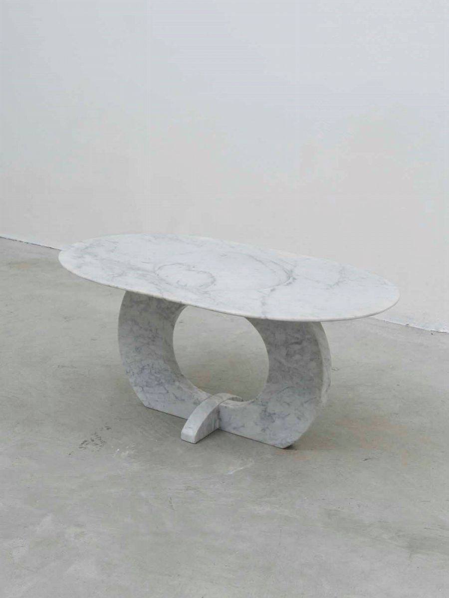 This is a unique piece created by English artist Will West in 2015. It is made of solid Carrara marble. This piece, originating as many of other West’s works from scraps of larger marble slats, plays with the idea of coffee table, deliberately sab-
