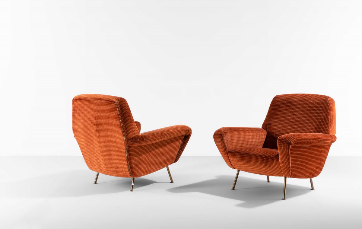 Le due poltrone sono in buono stato conservativo, tracce di ossidazione sui supporti in ottone. Segni sulle sedute dovuti al loro utilizzo. Maggiori dettagli sono visibili nelle fotografie in allegato.