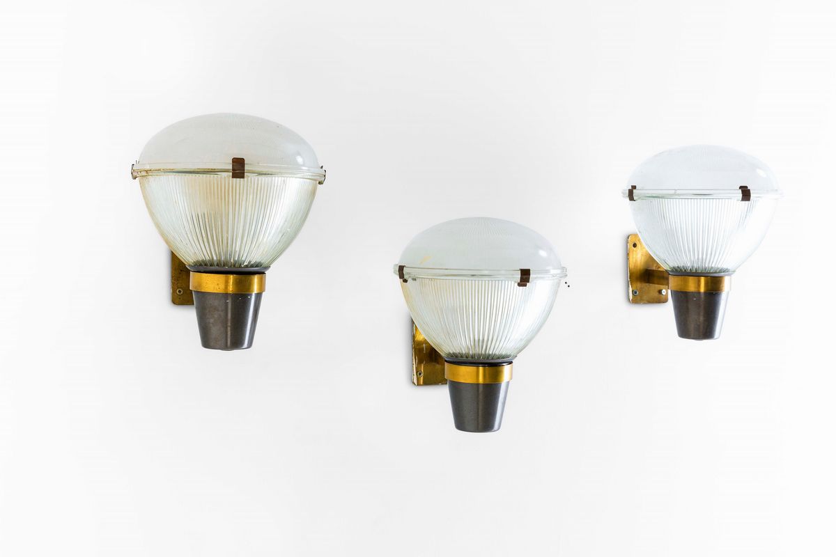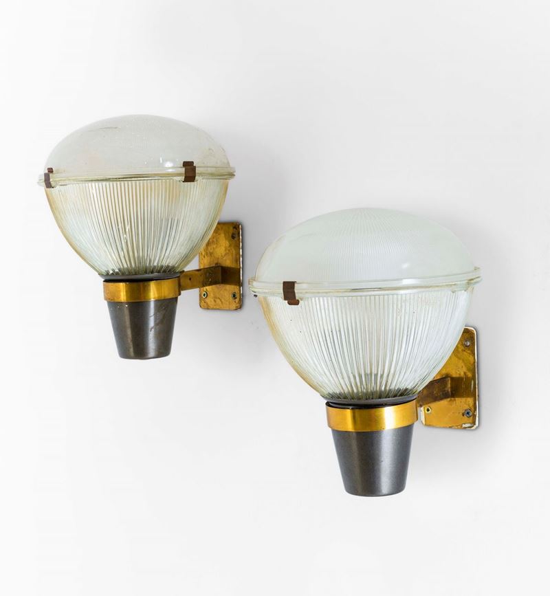 Le lampade si presentano in un buono stato conservativo, segni di usura lungo la struttura in ottone nichelato. Tracce di ossidazione lungo la struttura in ottone. Una delle applique presenta una sbeccatura del vetro. Maggiori dettagli sono visibili nelle fotografie in allegato.