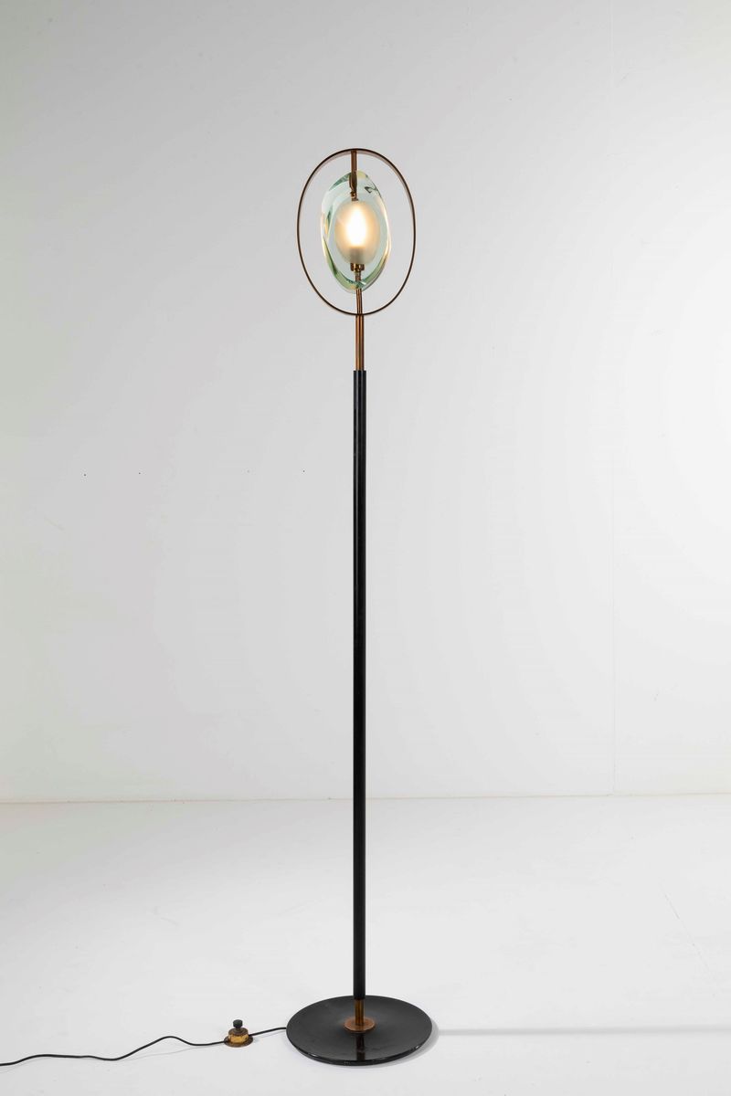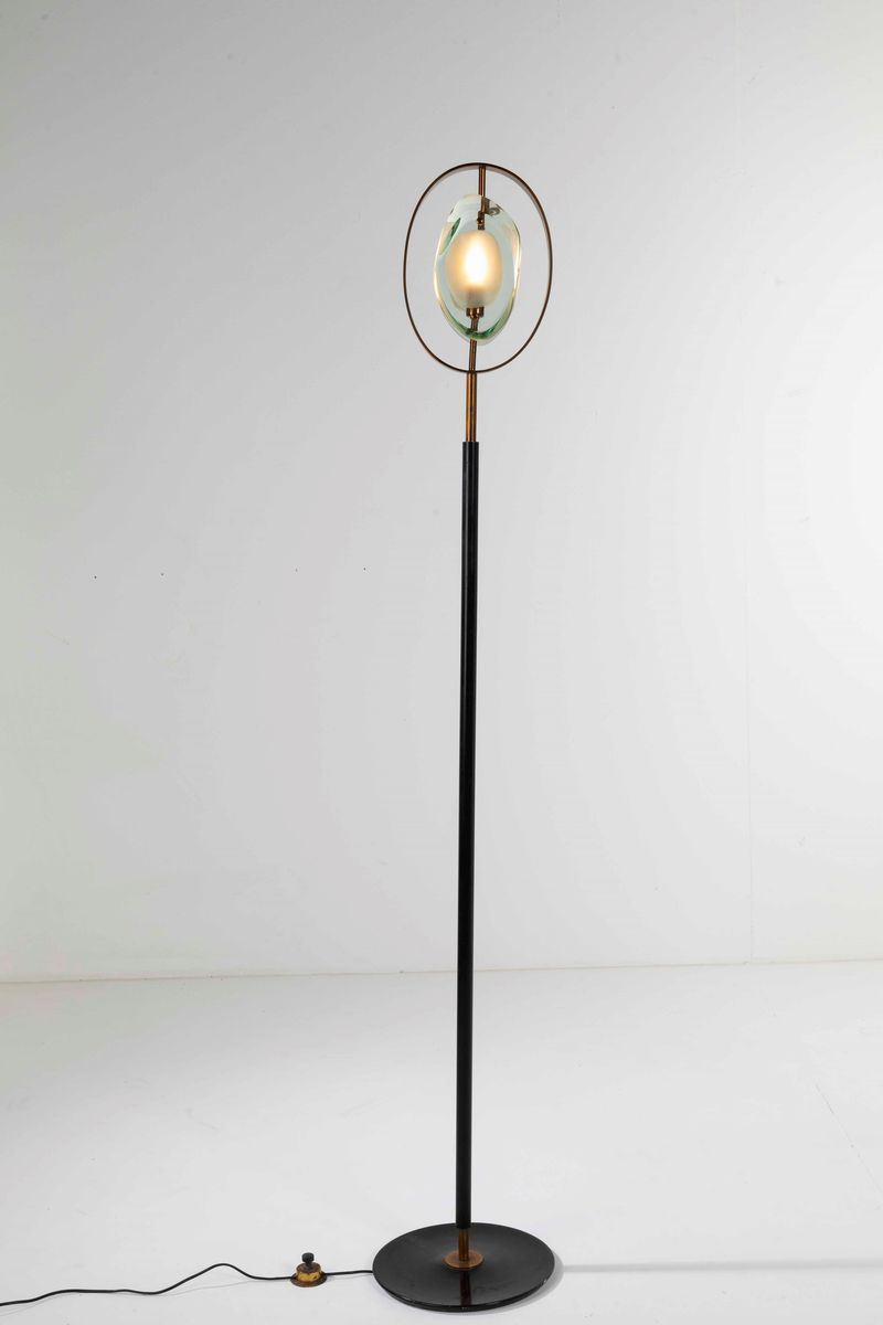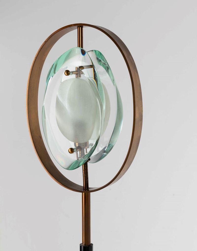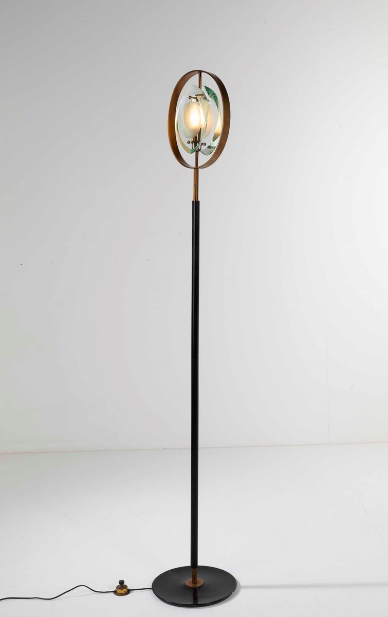 La lampada è in buono stato conservativo. Lievissimi segni lungo la struttura in metallo laccato e piccole tracce di ossidazione sui dettagli in ottone. Ulteriori foto visibili in allegato.