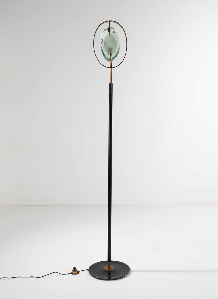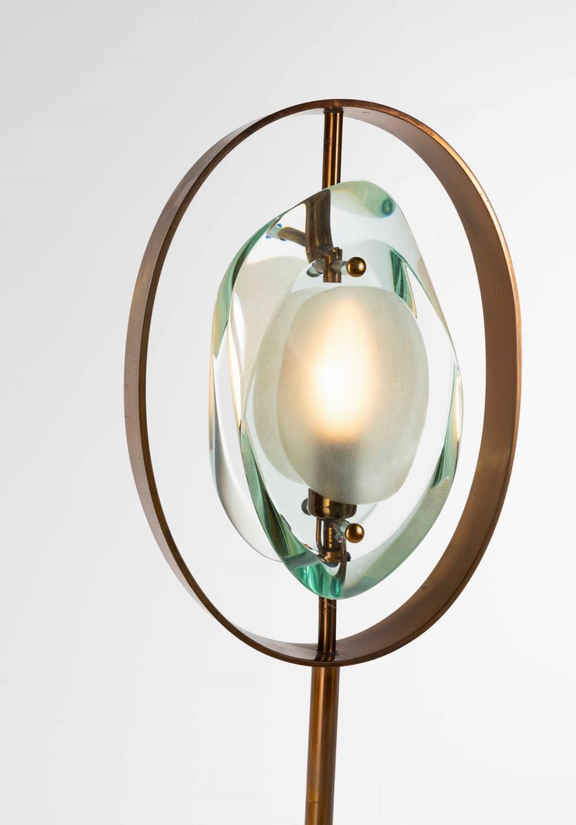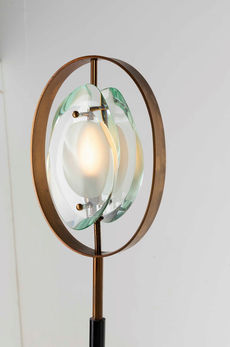 La lampada è in buono stato conservativo. Lievissimi segni lungo la struttura in metallo laccato e piccole tracce di ossidazione sui dettagli in ottone. Ulteriori foto visibili in allegato.