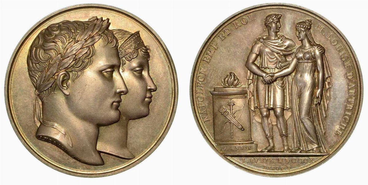 CERIMONIE PER IL MATRIMONIO DI NAPOLEONE CON MARIA LUIGIA D'AUSTRIA. Medaglia in argento 1810.