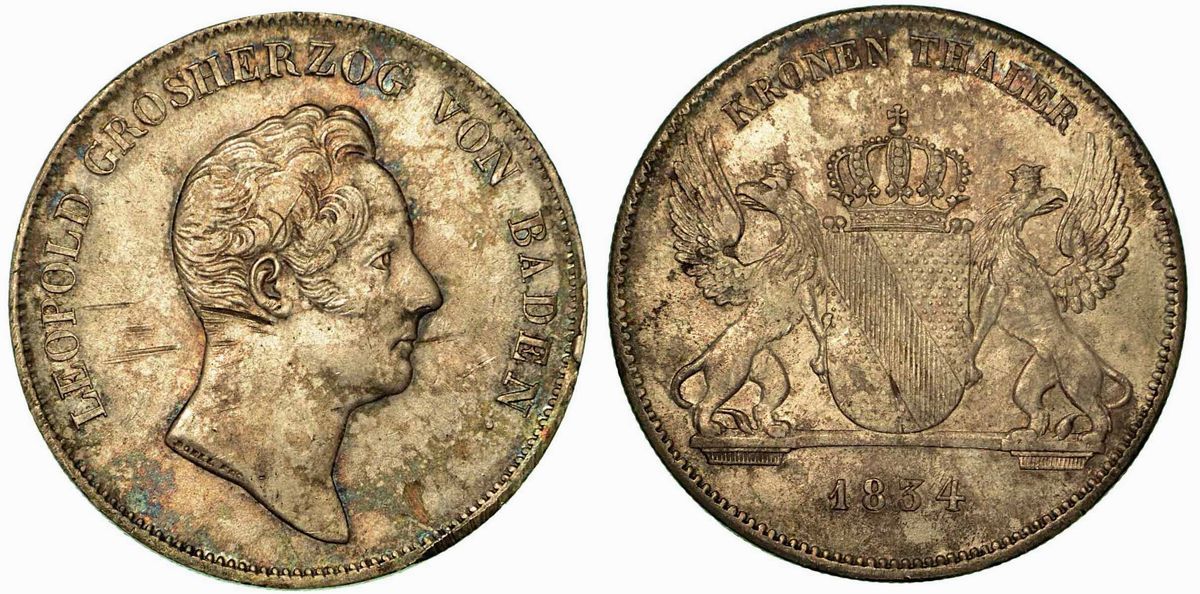 GERMANIA - BADEN. Karl Leopold Friedrich, 1830-1852. Kronenthaler 1834.