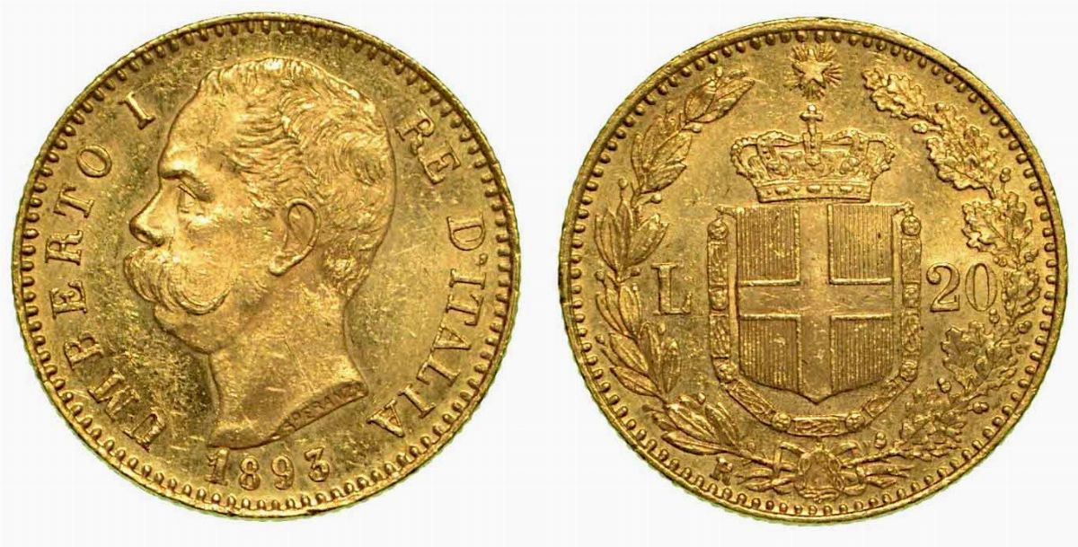 REGNO D'ITALIA. Umberto I di Savoia, 1878-1900. 20 Lire 1893 (con 1 ribattuto).