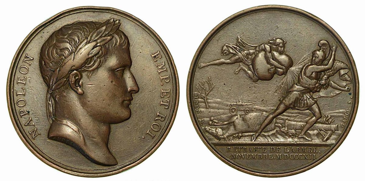 RITIRATA DELL'ESERCITO FRANCESE DALLA CAMPAGNA DI RUSSIA. Medaglia in bronzo 1812.