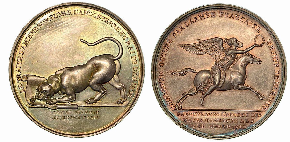 ROTTURA DEL TRATTATO D'AMIENS - OCCUPAZIONE DI HANNOVER. Medaglia in argento 1803.