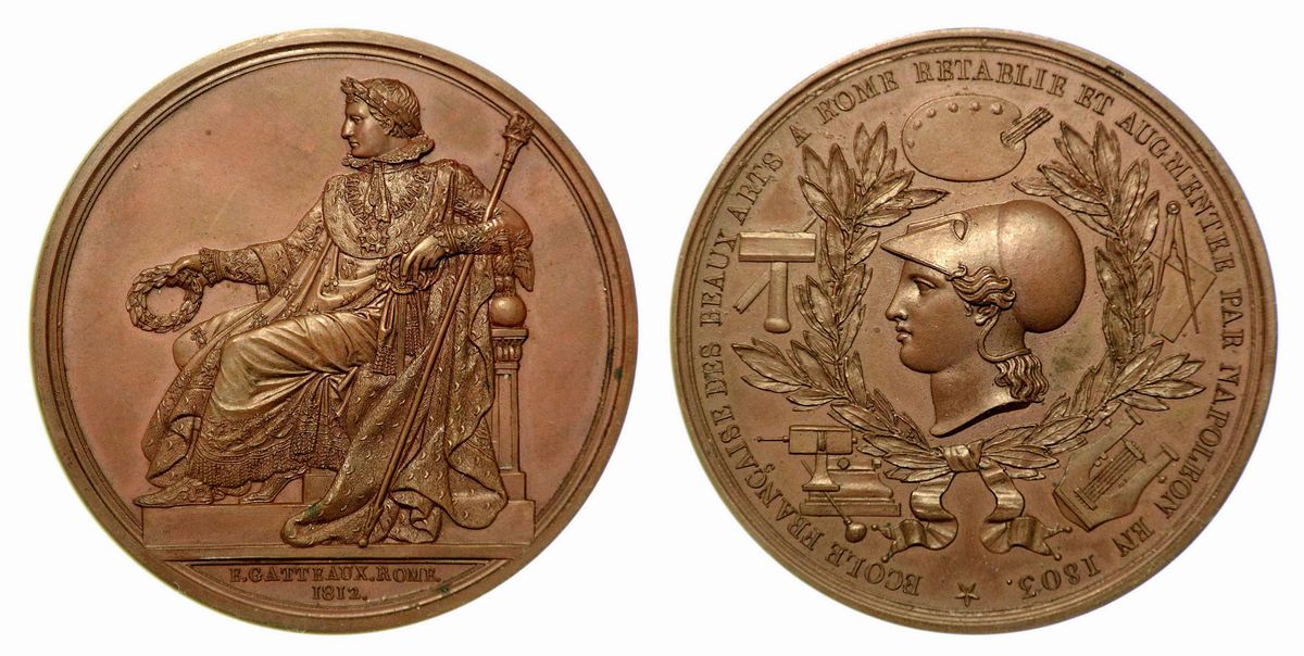 SCUOLA FRANCESE DELLE BELLE ARTI A ROMA. Medaglia in bronzo 1812.
