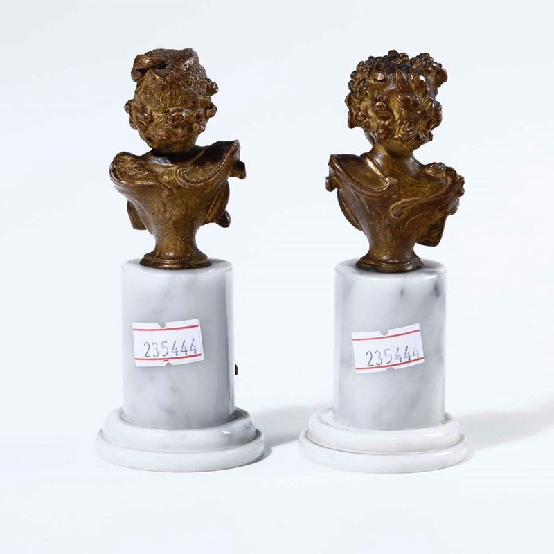 Busti di fauni Bronzo fuso e dorato su colonne in marmo Fonditore del XIX secolo