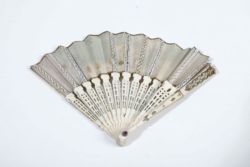 Ventaglio osso e pergamena dipinta, firmato Au Froy