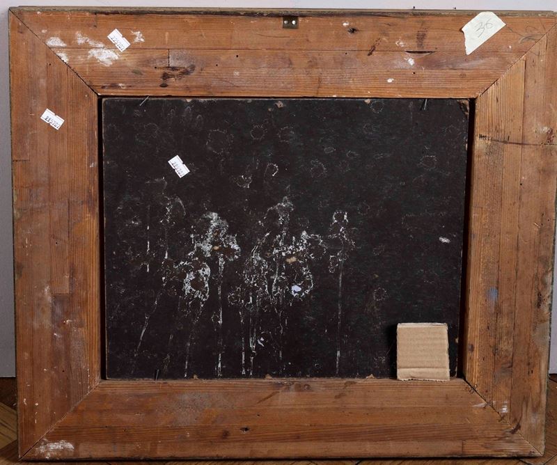 olio su cartoncino, cm 28x36, firma illeggibile sul molo