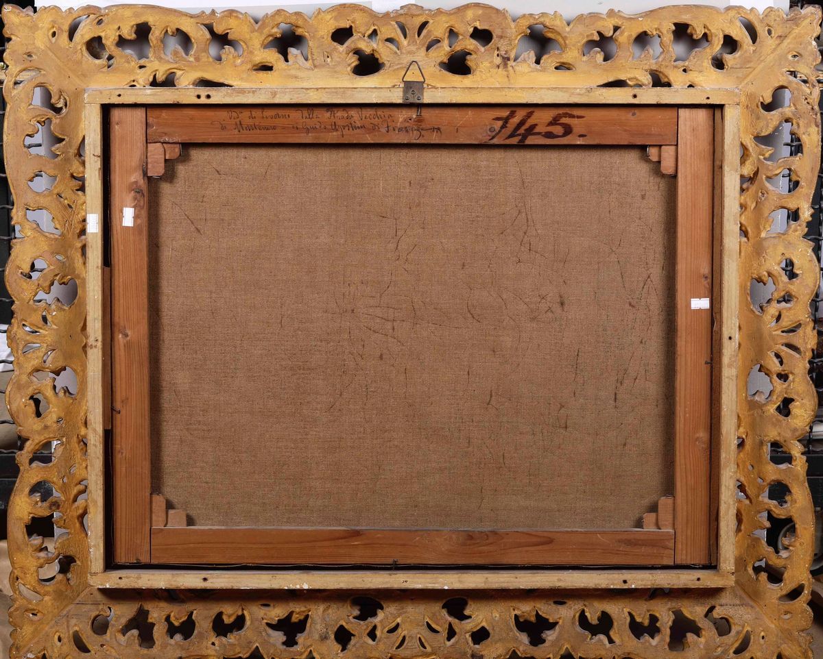 firmato in basso a sinistra, al retro scritta ottocentesca “Ved.a di Livorno dalla strada vecchia di Montenero di Guido Agostini di Firenze