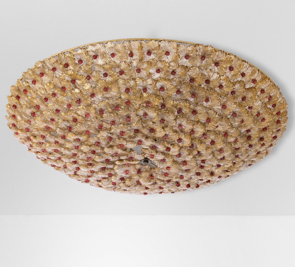 Due lampade a plafone con struttura in metallo ed elementi diffusori in vetro di Murano